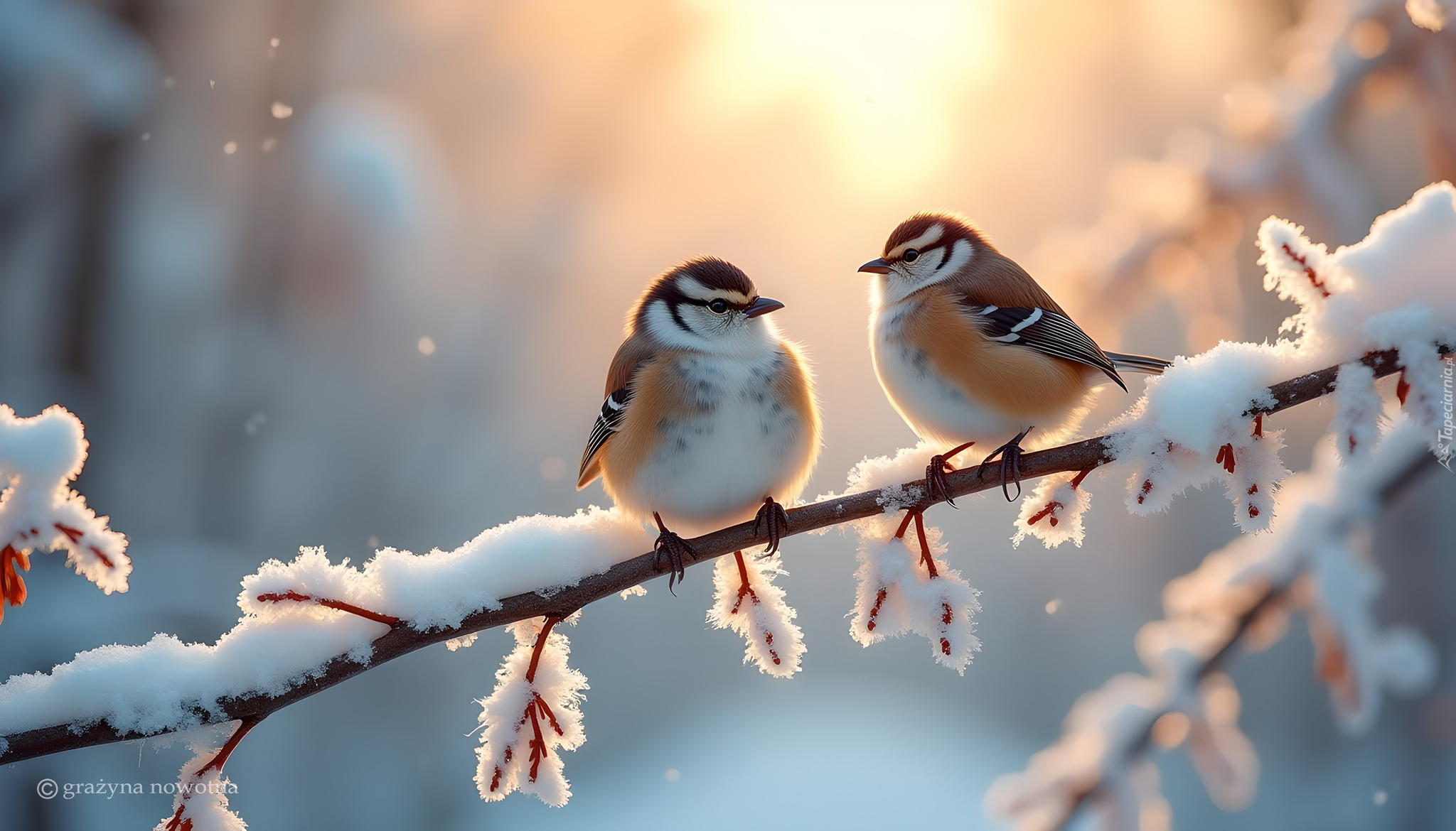Edytor tapety: Dwa ptaki na ośnieżonej gałązce