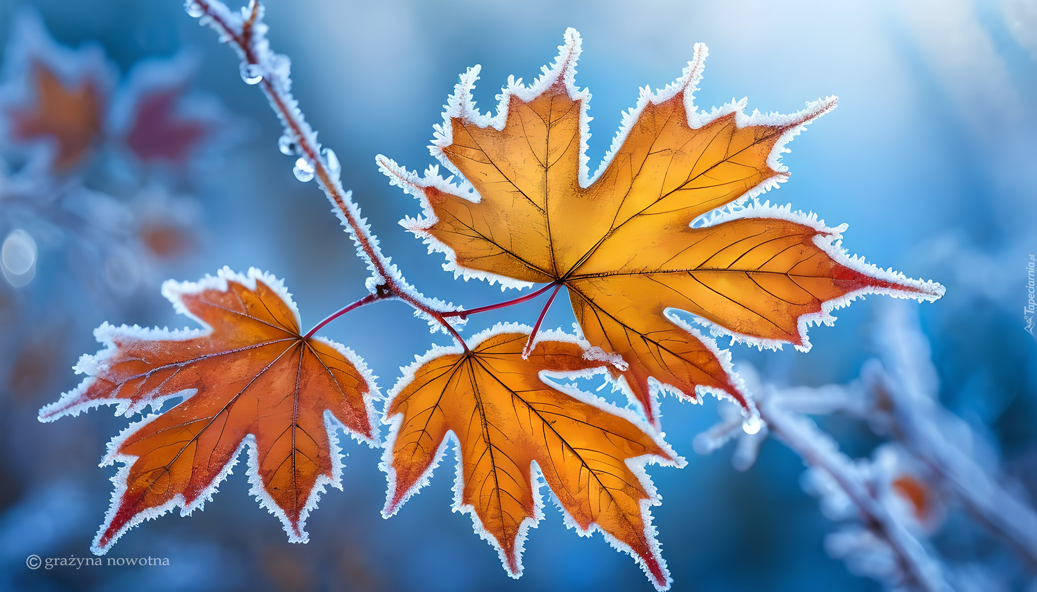Edytor tapety: Grafika z oszronionymi pożółkłymi liśćmi