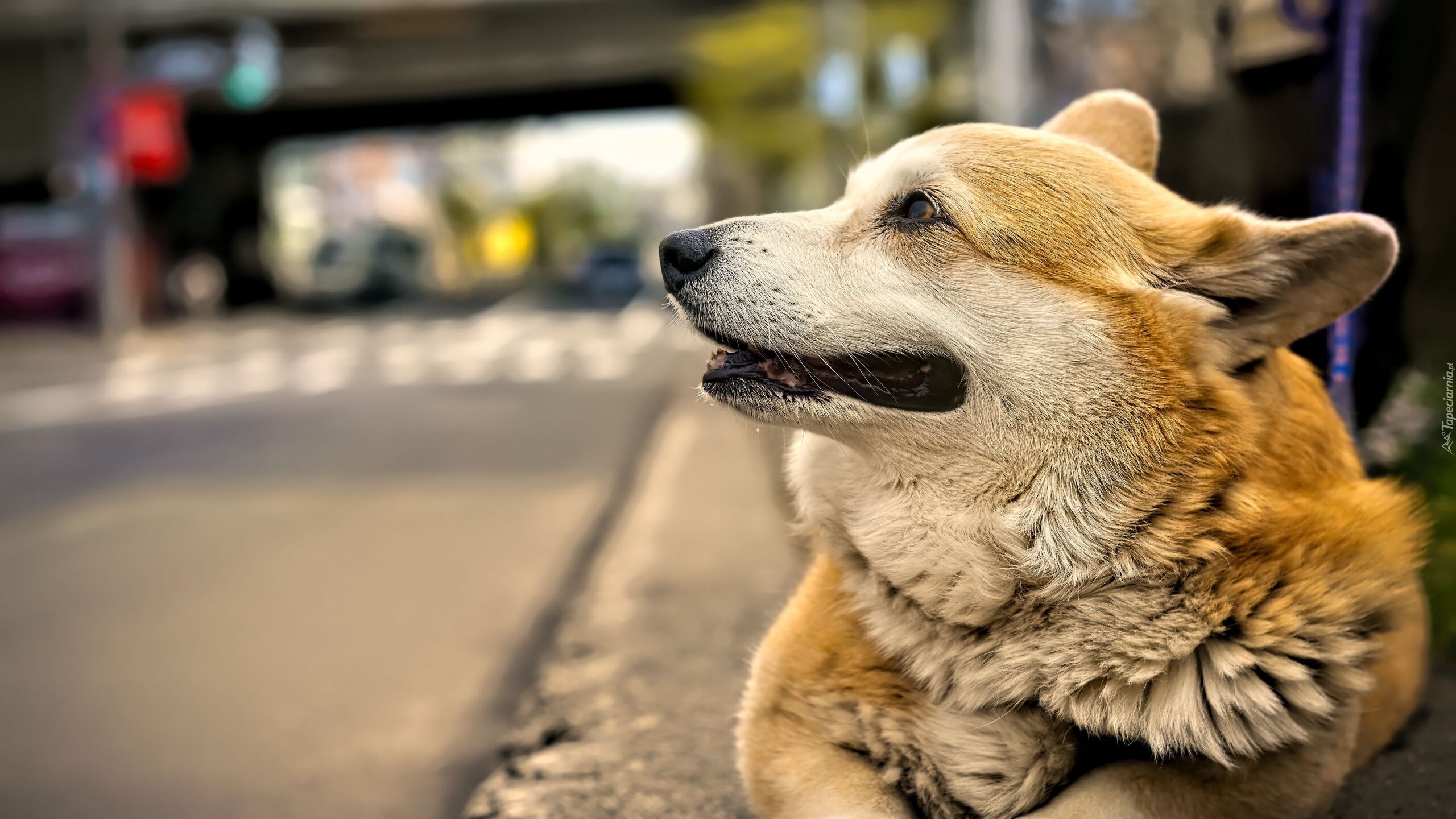 Edytor tapety: Pies leżący na ulicy