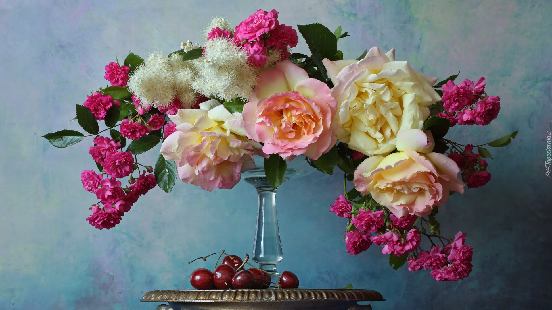Edytor tapety: Kolorowe kwiaty w wazonie