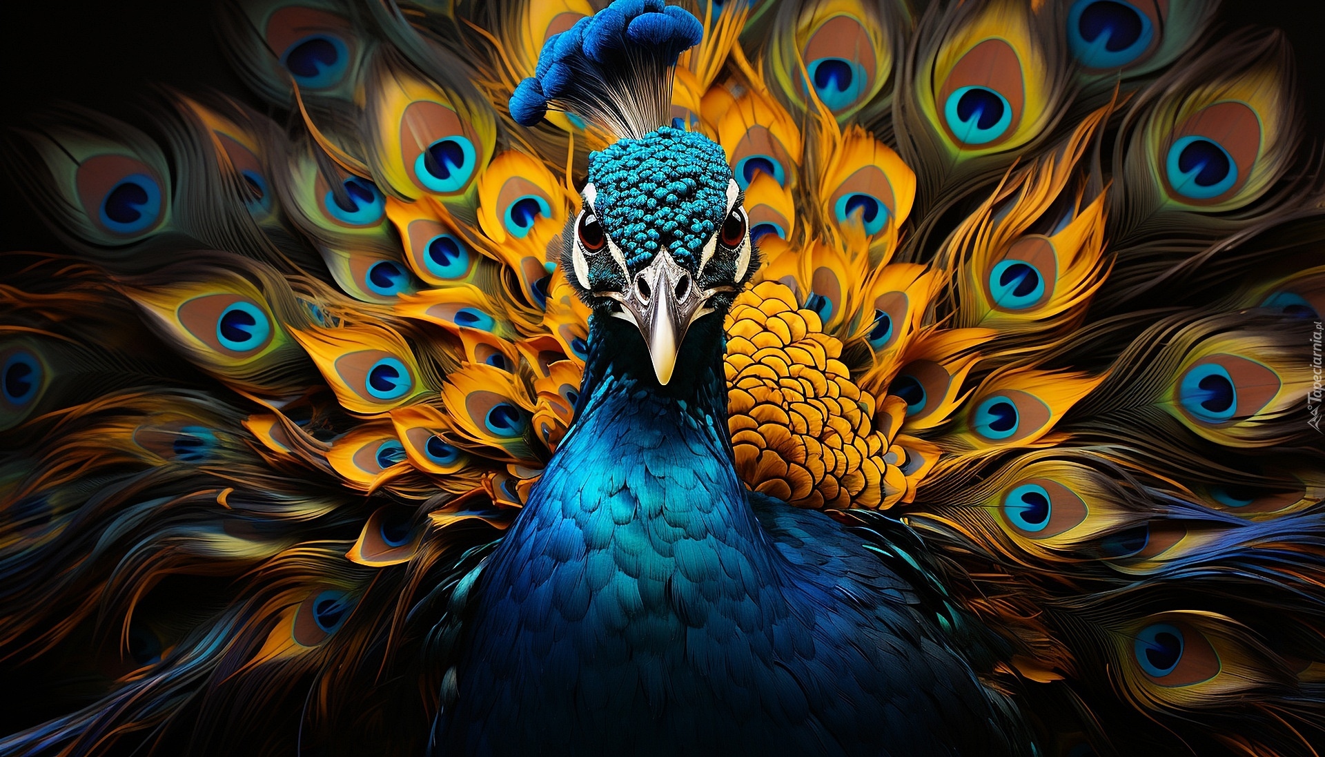 Edytor tapety: Paw z kolorowymi piórami w grafice