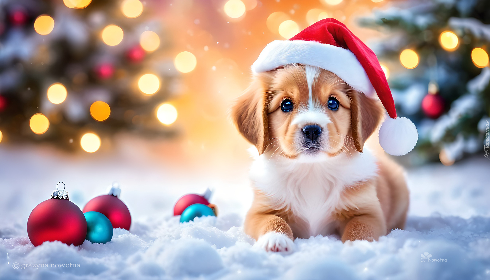 Edytor tapety: Szczeniak w czapce Mikołaja