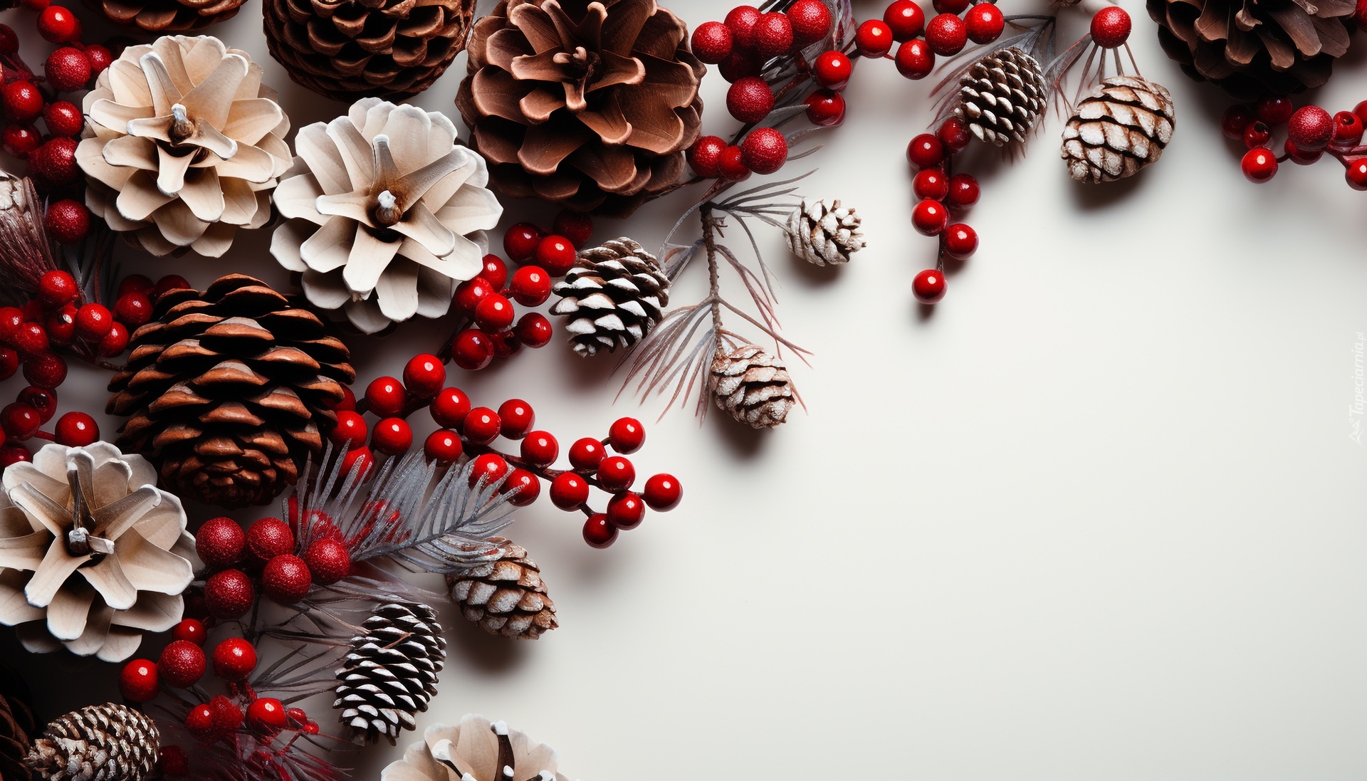 Edytor tapety: Kompozycja z szyszek gałązek i czerwonych owoców