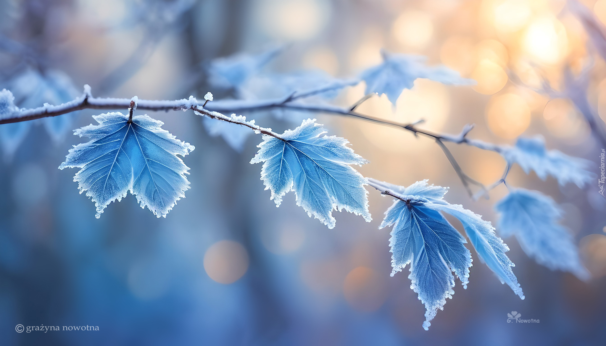 Edytor tapety: Oszronione niebieskie liście w grafice