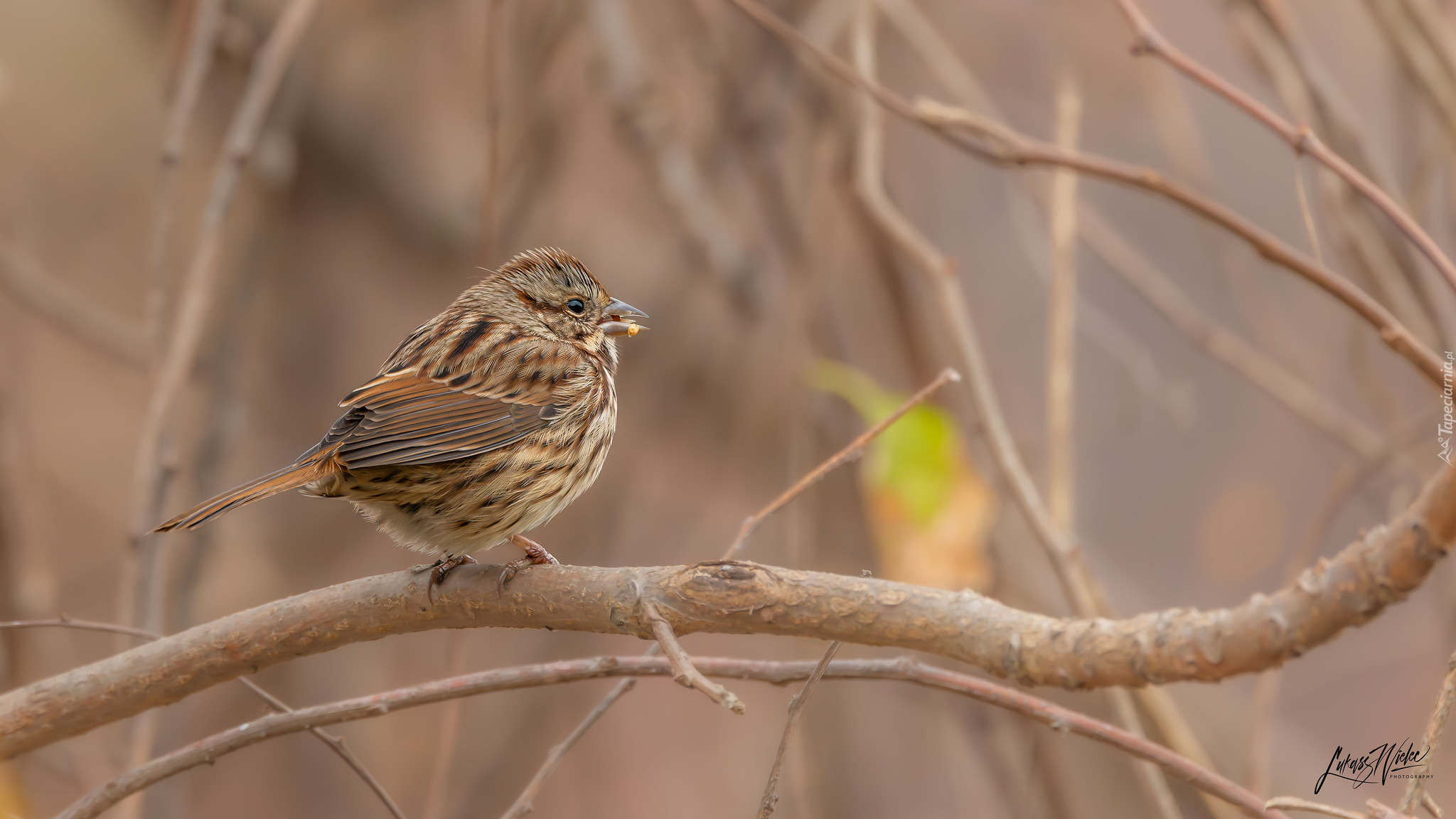 Edytor tapety: Szarobrewka śpiewna na gałęzi