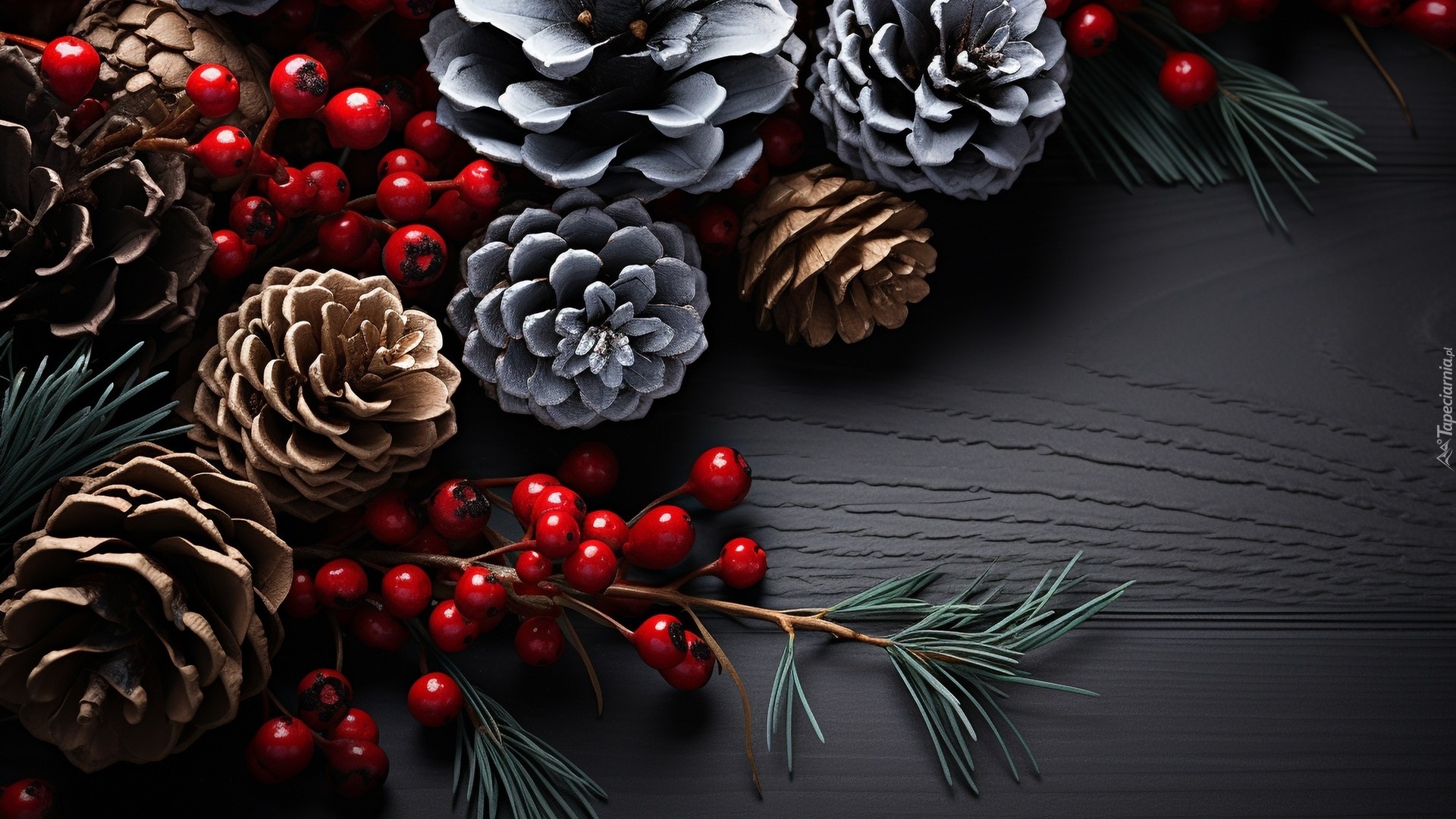 Edytor tapety: Szyszki i czerwone owoce