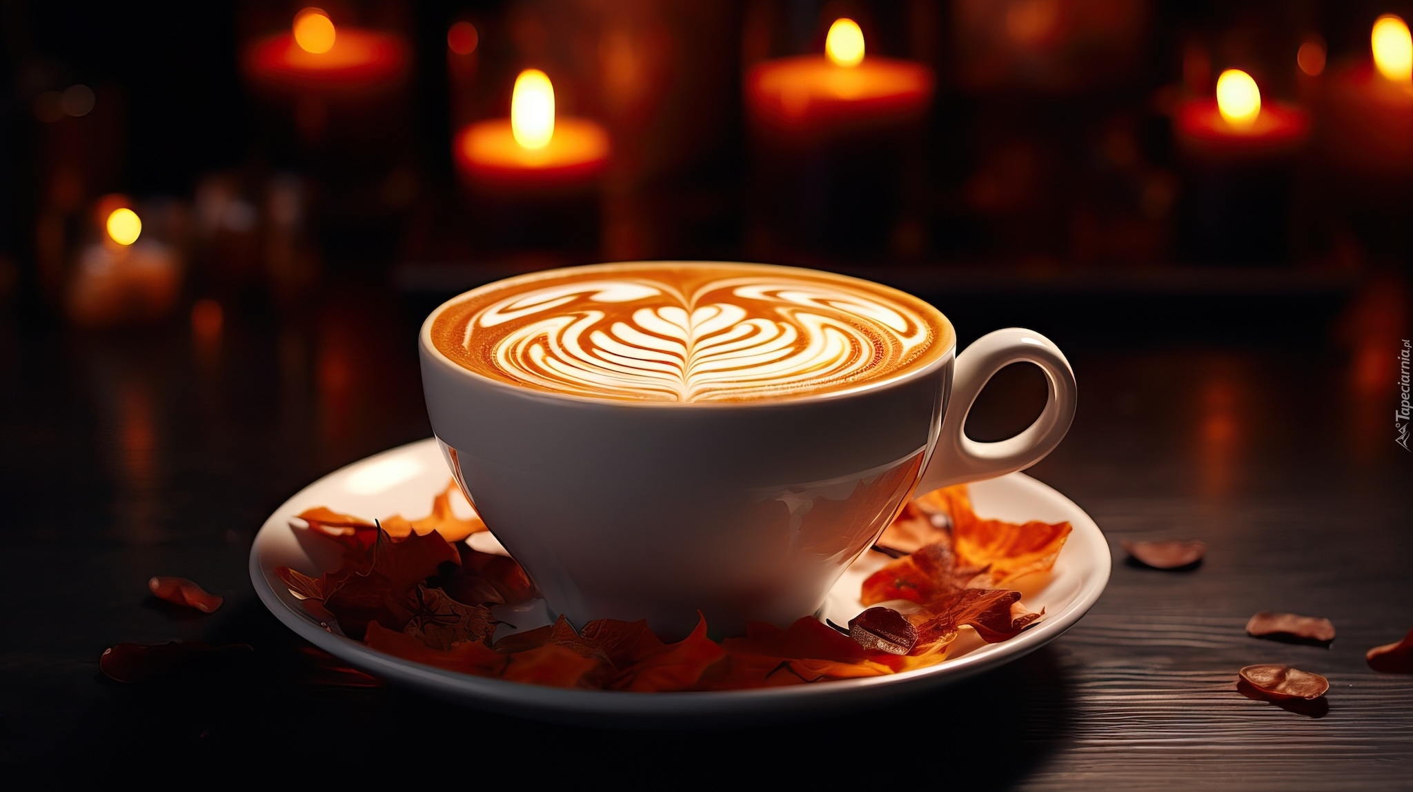 Edytor tapety: Biała filiżanka na spodeczku z kawą