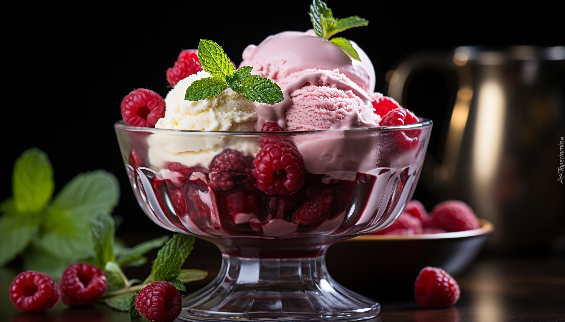 Edytor tapety: Pucharek z lodami i malinami