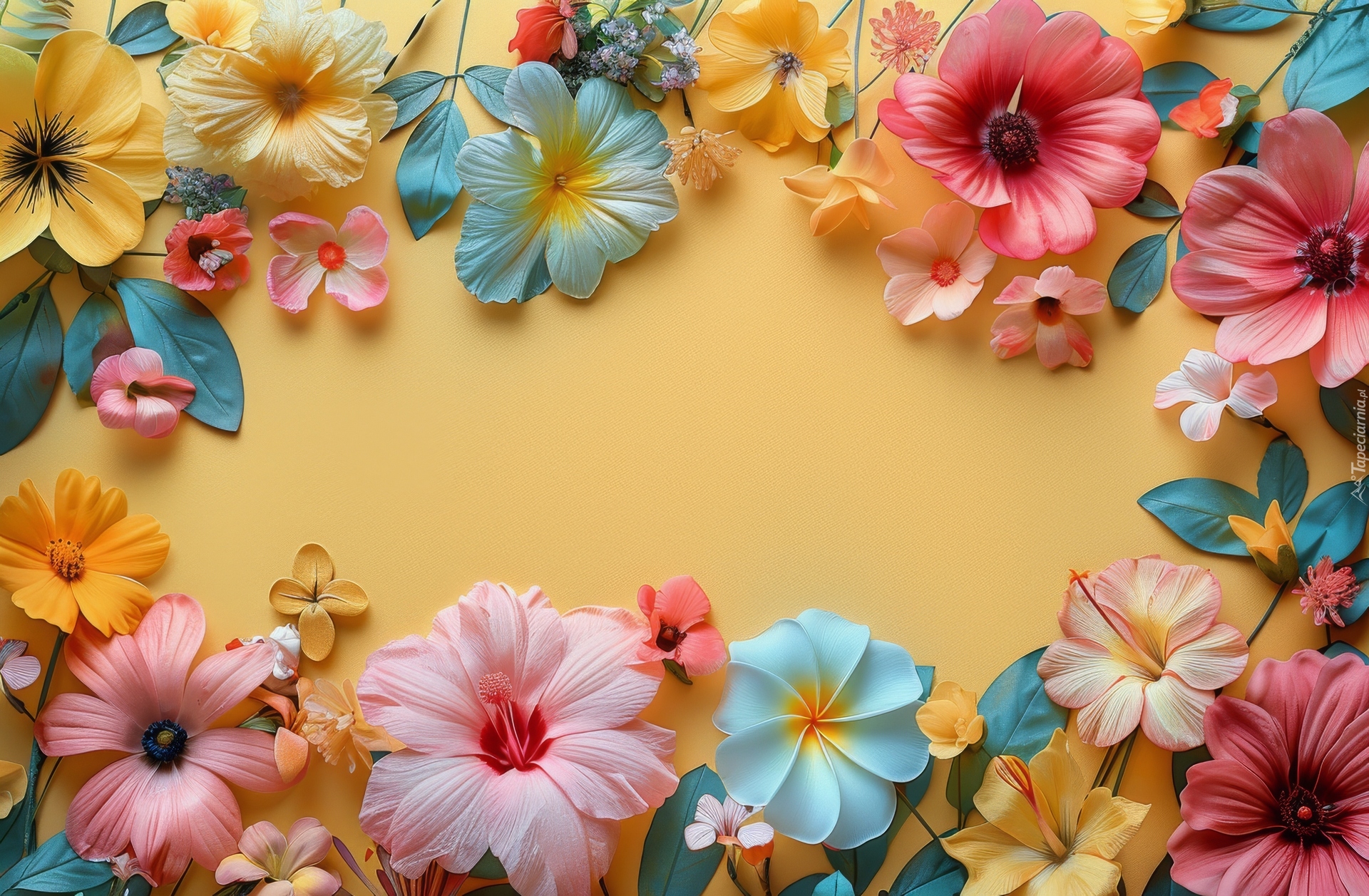 Edytor tapety: Kolorowe kwiaty na żółtym tle