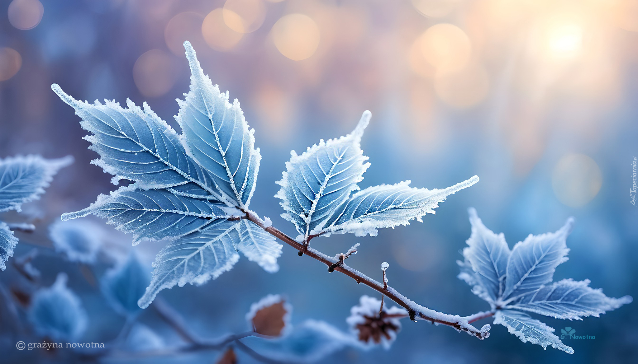 Edytor tapety: Zmarznięte niebieskie liście w grafice
