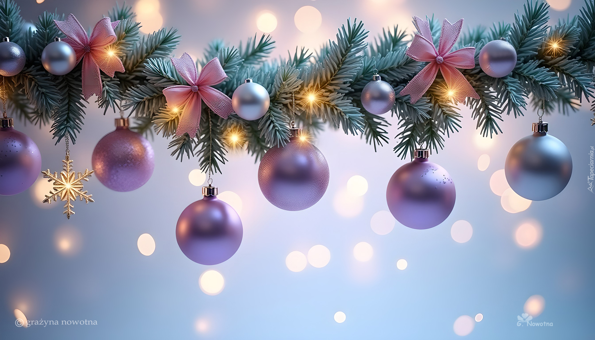 Edytor tapety: Bombki wiszące na gałązce z kokardkami