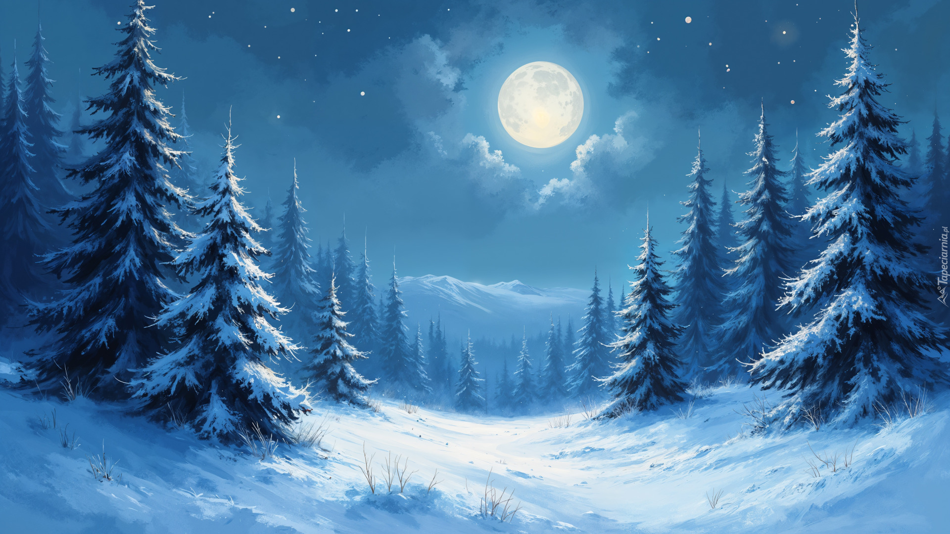 Edytor tapety: Księżyc w pełni nad zimowym lasem