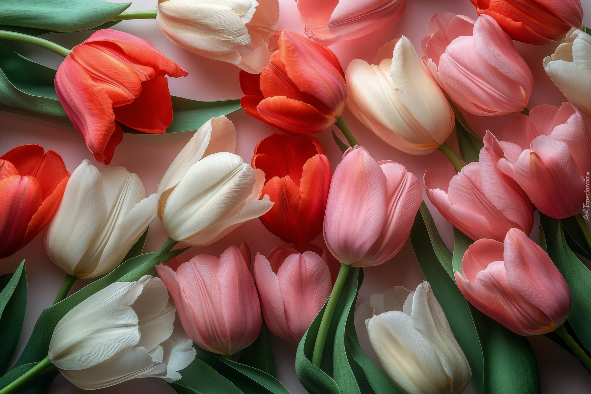 Edytor tapety: Białe czerwone i różowe tulipany