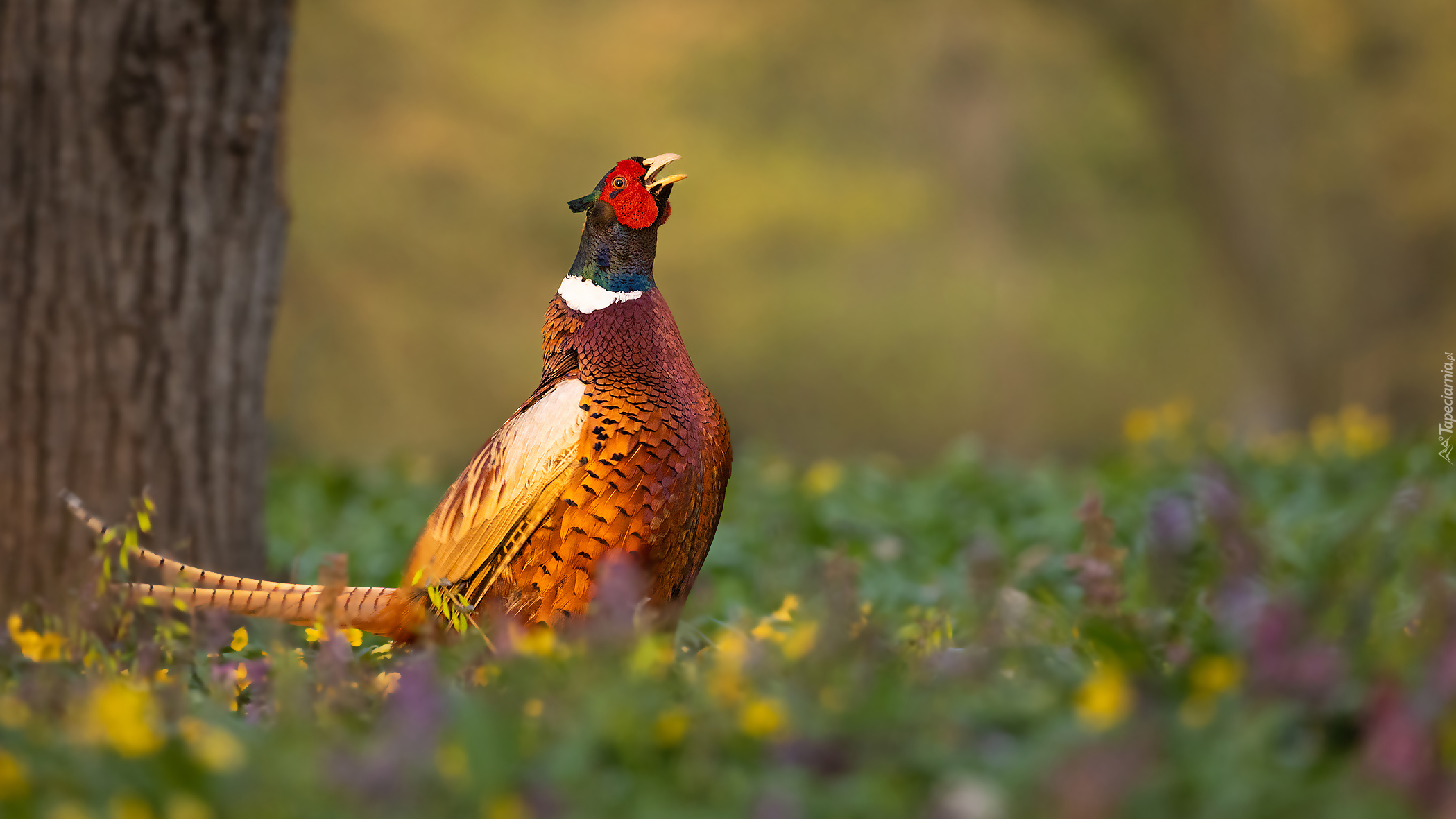 Edytor tapety: Kolorowy bażant wśród roślin