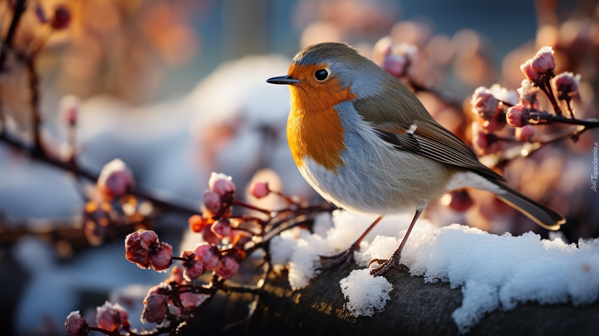 Edytor tapety: Rudzik na ośnieżonej gałązce