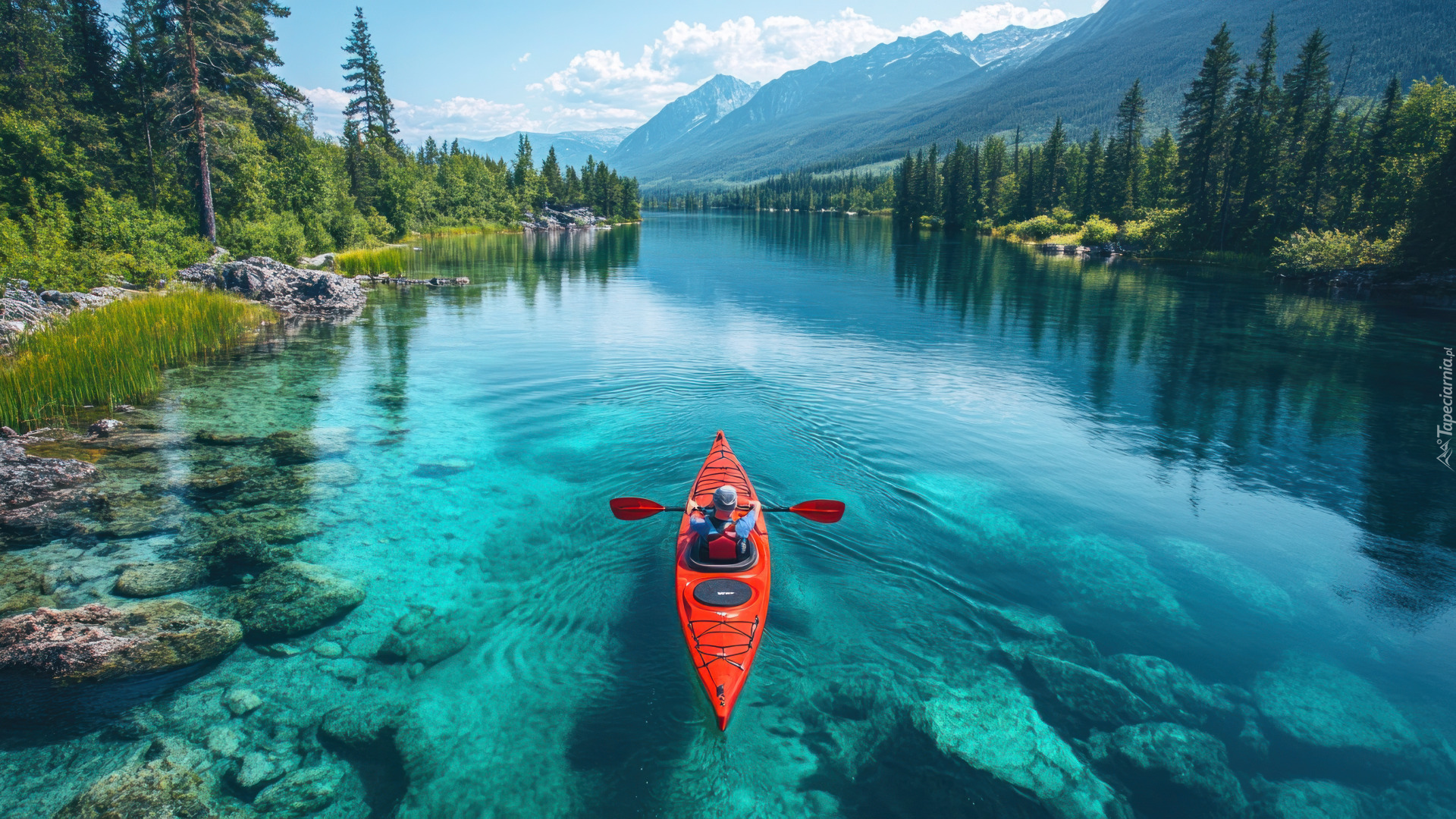 Edytor tapety: Człowiek w kajaku na górskiej rzece