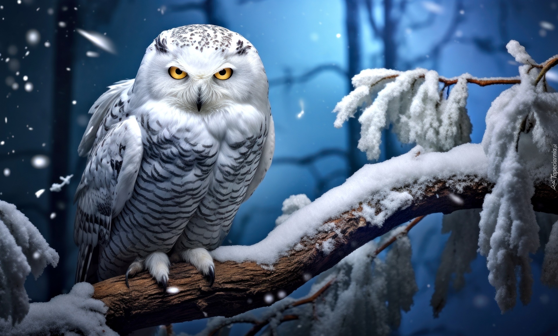 Edytor tapety: Sowa śnieżna na ośnieżonym konarze