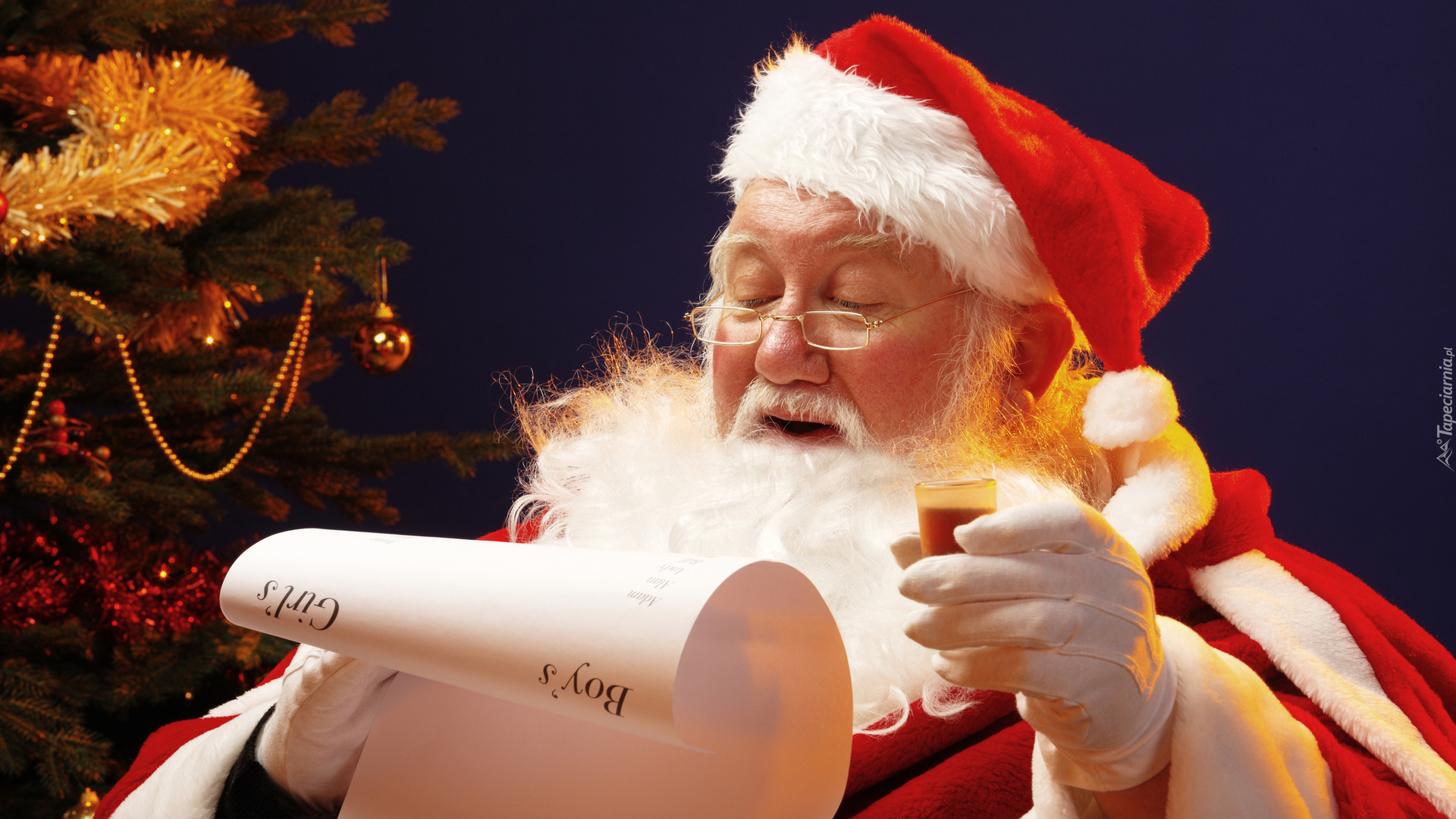 Edytor tapety: Święty Mikołaj w okularach czytający list