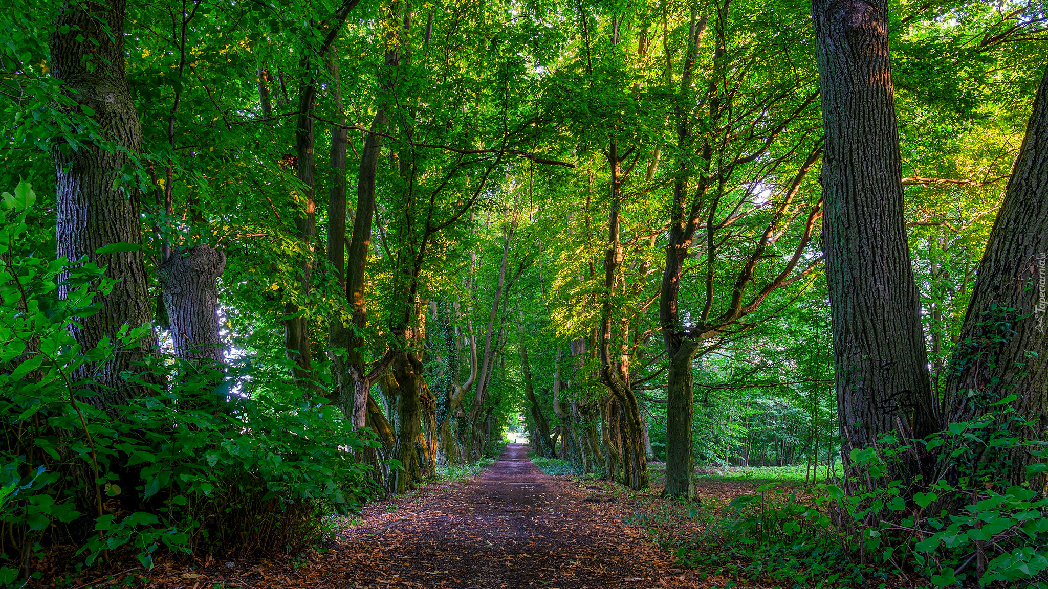 Edytor tapety: Zielone drzewa po obu stronach alejki