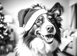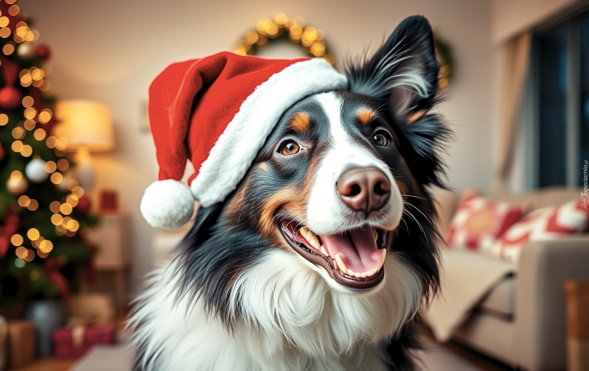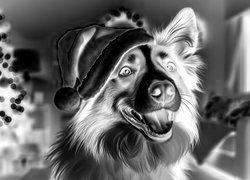 Edytor tapety: Owczarek australijski w czapce Mikołaja