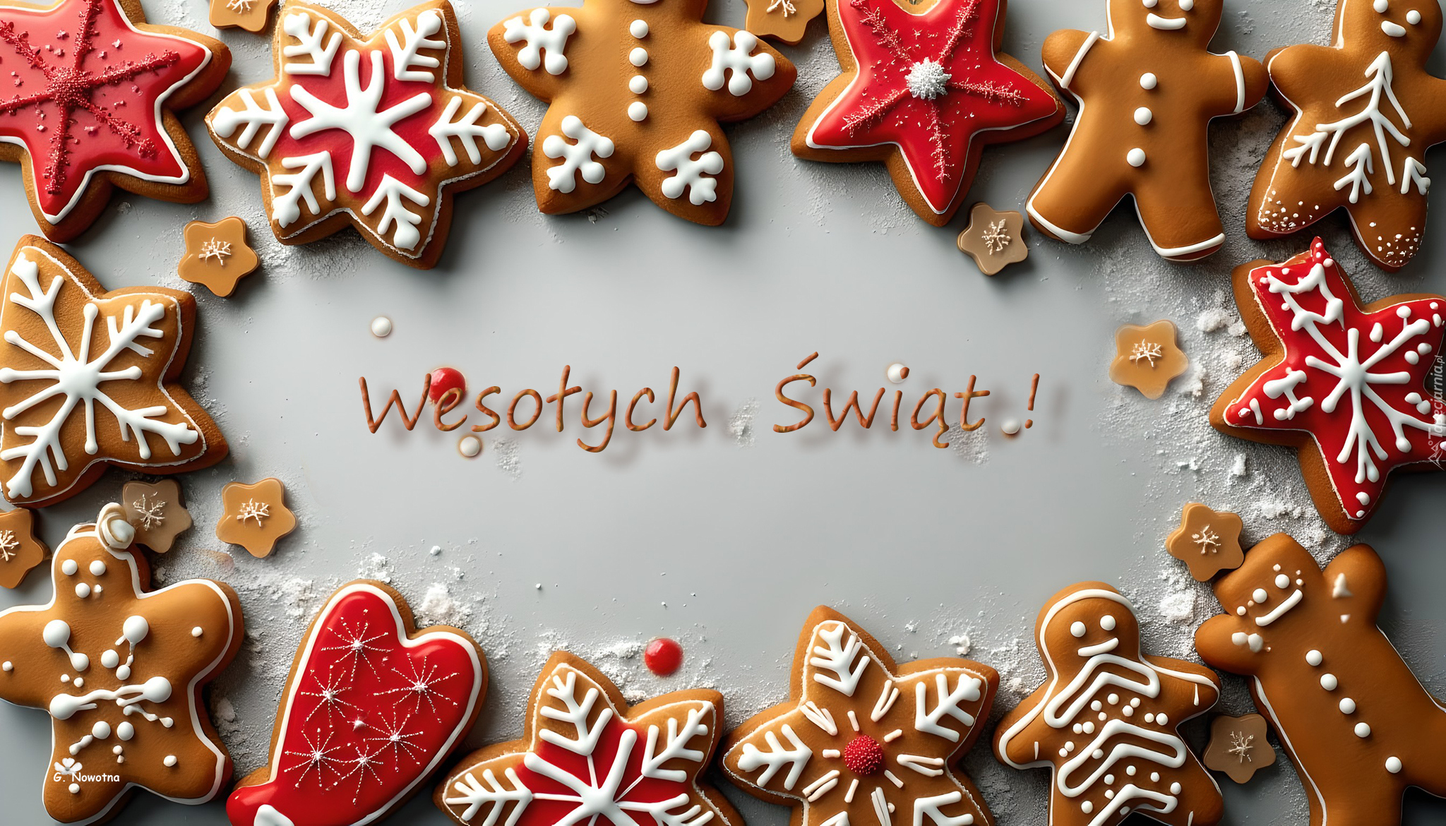 Edytor tapety: Życzenia świąteczne wśród lukrowanych pierniczków