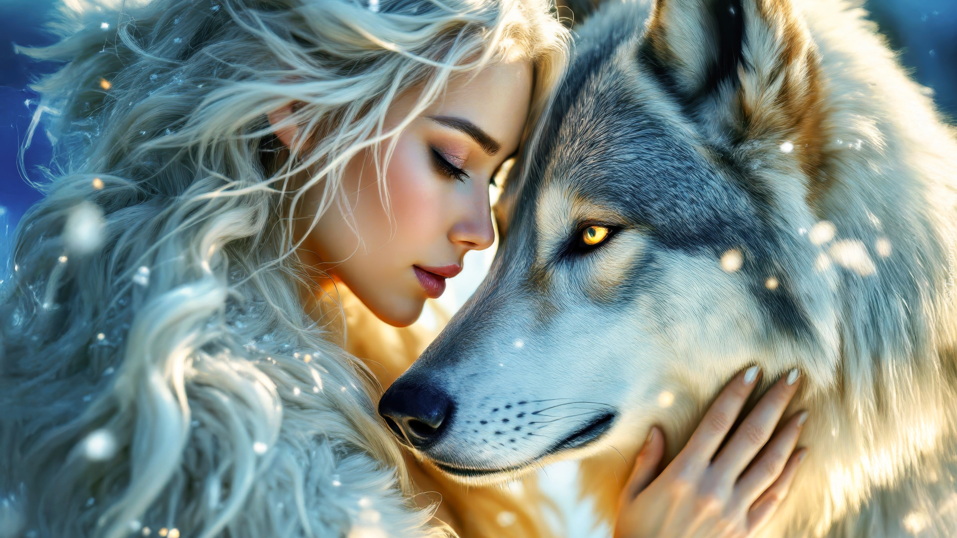 Edytor tapety: Głowa blondynki i wilka