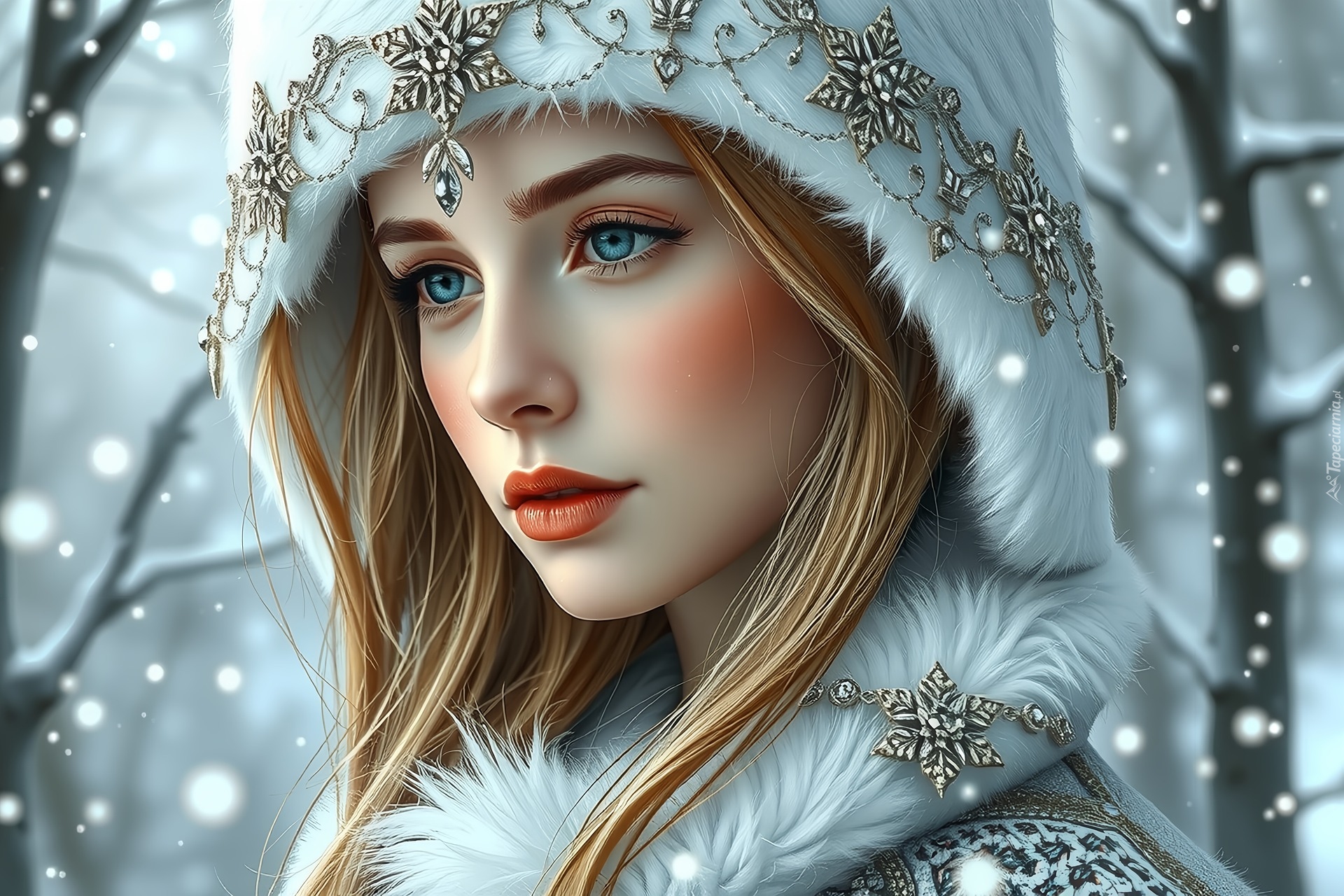 Edytor tapety: Długowłosa blondynka w czapce z biżuterią