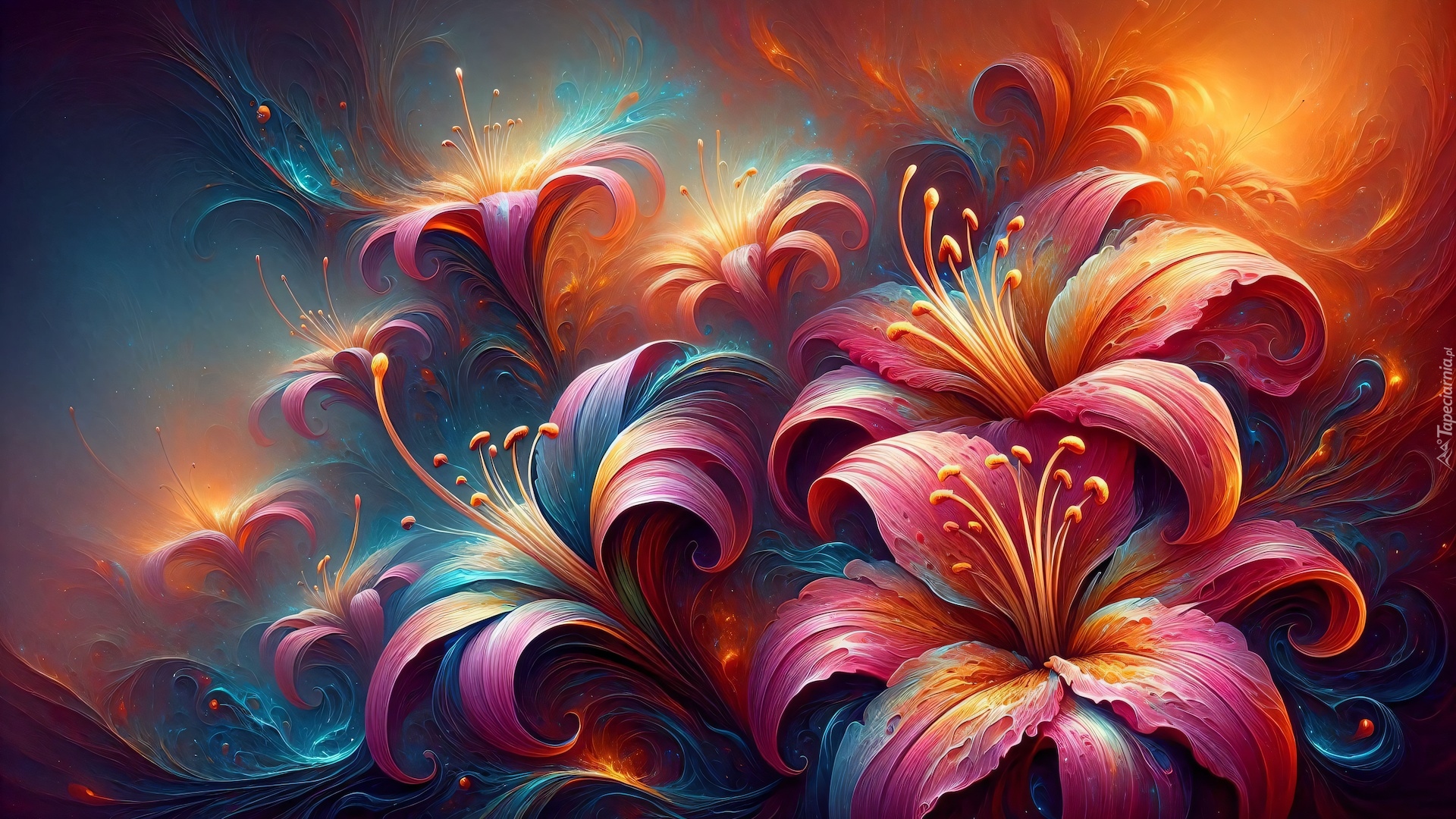 Edytor tapety: Rozwinięte kolorowe lilie na rozświetlonym tle