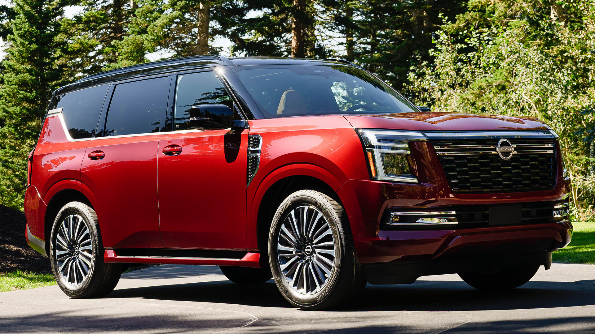 Edytor tapety: Czerwony Nissan Armada bok i przód