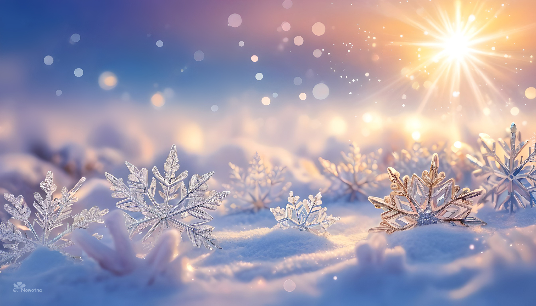 Edytor tapety: Śnieżynki w śniegu rozświetlone promieniami słońca