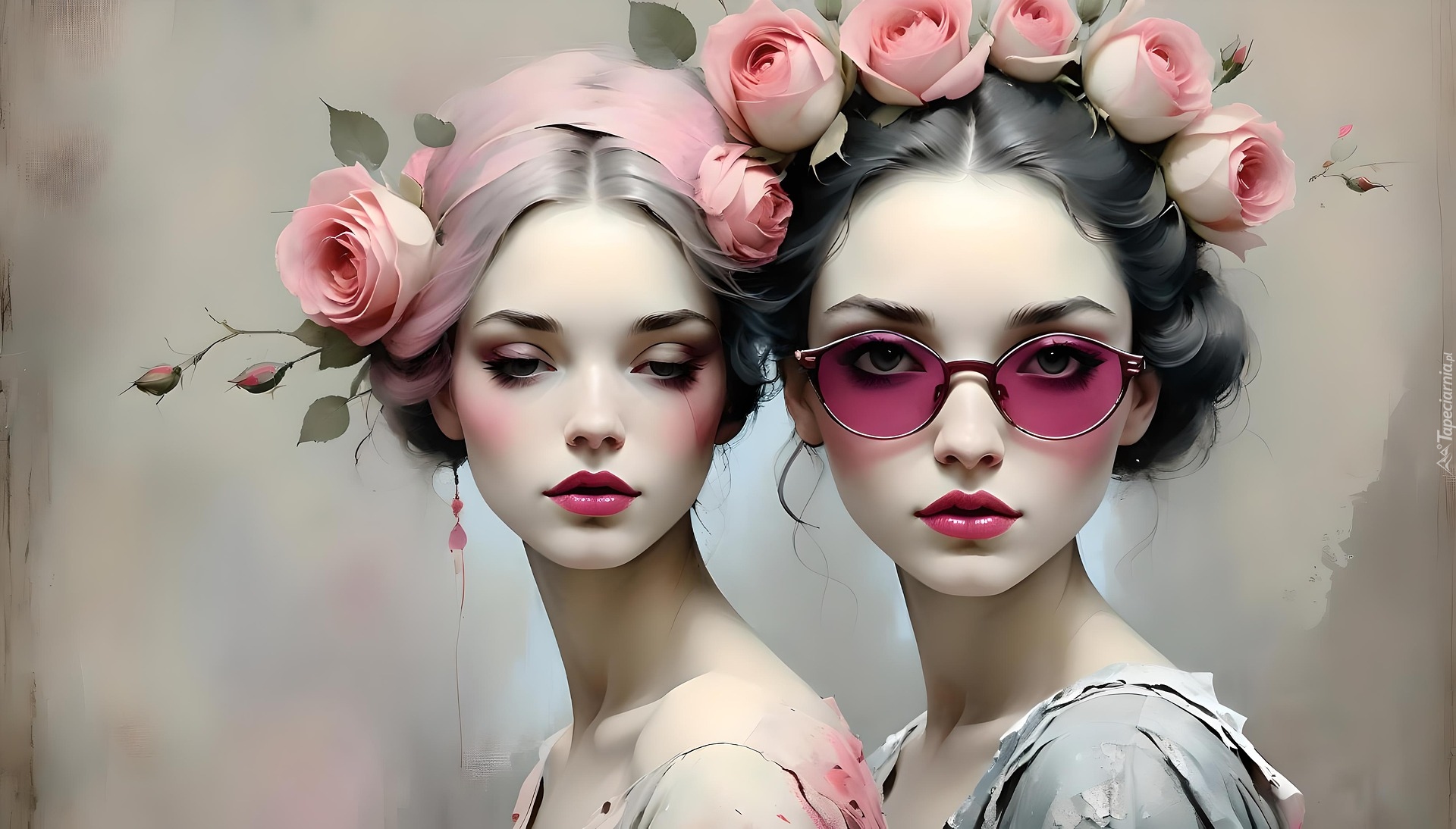 Edytor tapety: Dwie dziewczyny z różami we włosach