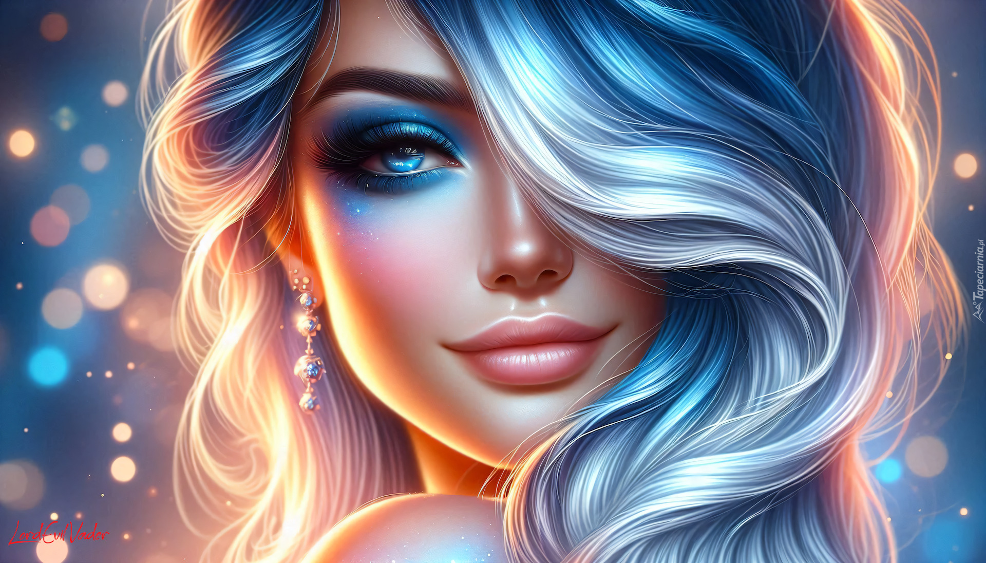 Edytor tapety: Twarz blondynki z długimi włosami w makijażu