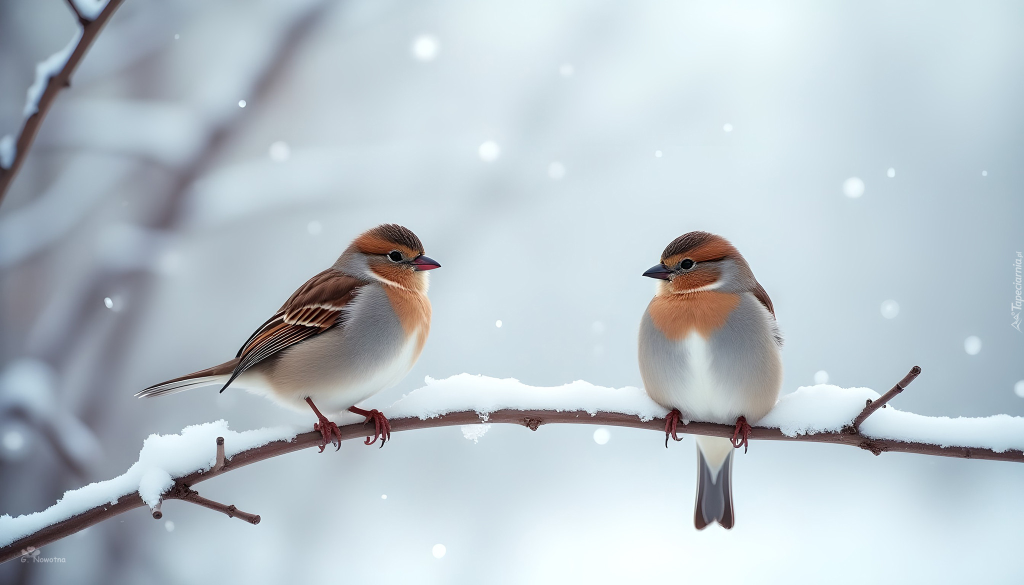 Edytor tapety: Dwa ptaki na ośnieżonej gałązce w grafice