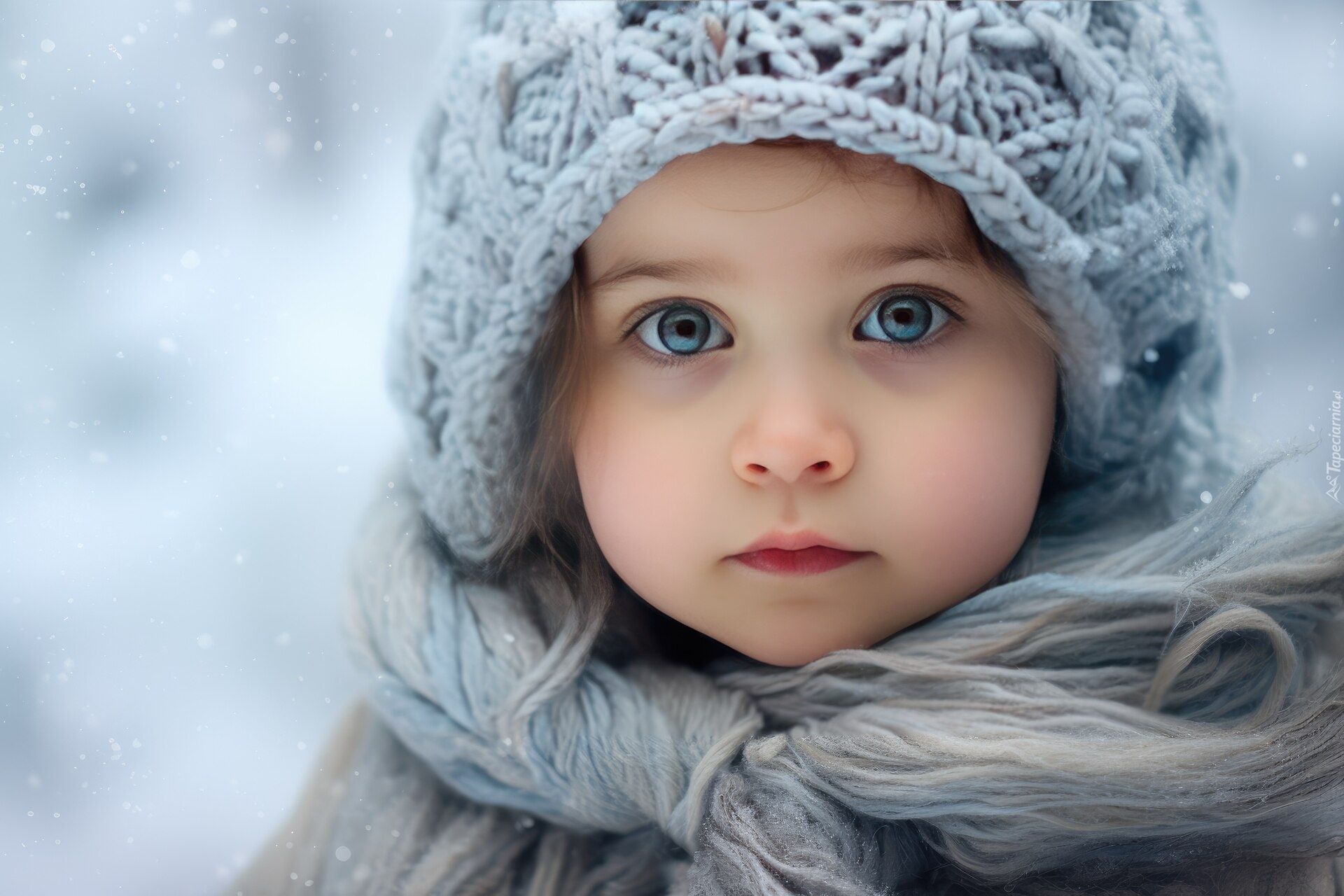Edytor tapety: Twarz niebieskookiej dziewczynki w czapce i szaliku