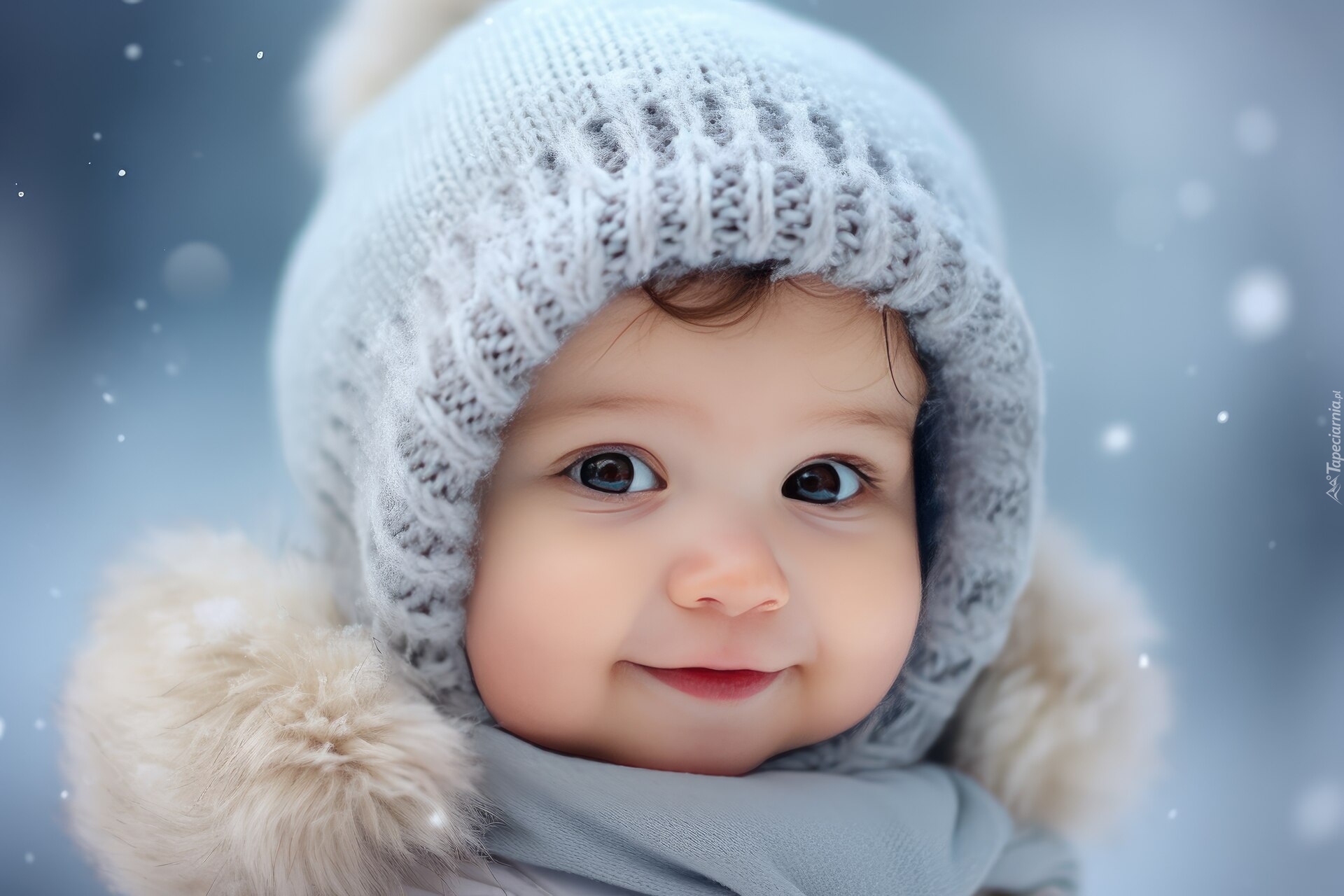 Edytor tapety: Twarz dziewczynki w szarej czapce