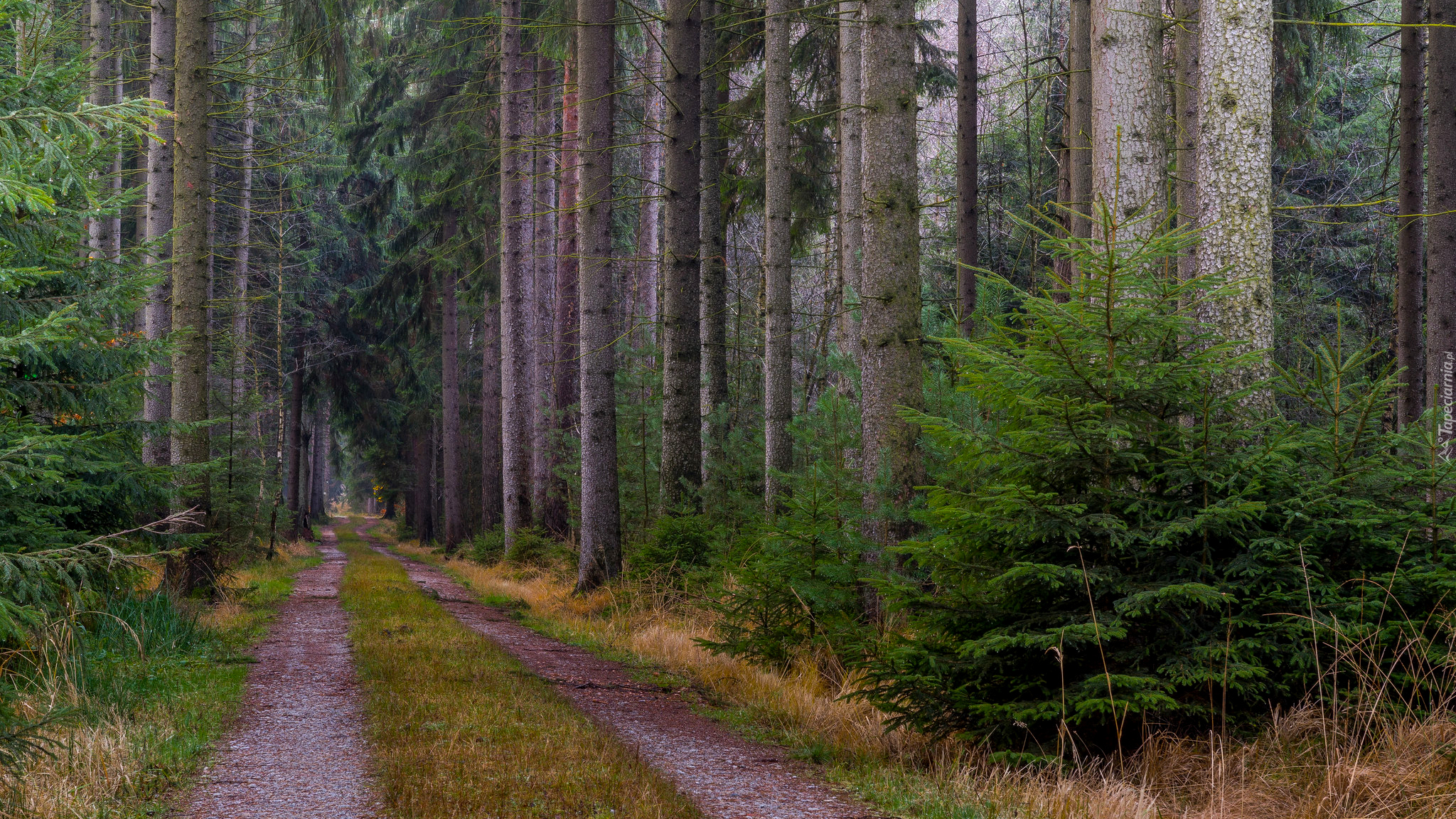 Edytor tapety: Droga w lesie iglastym