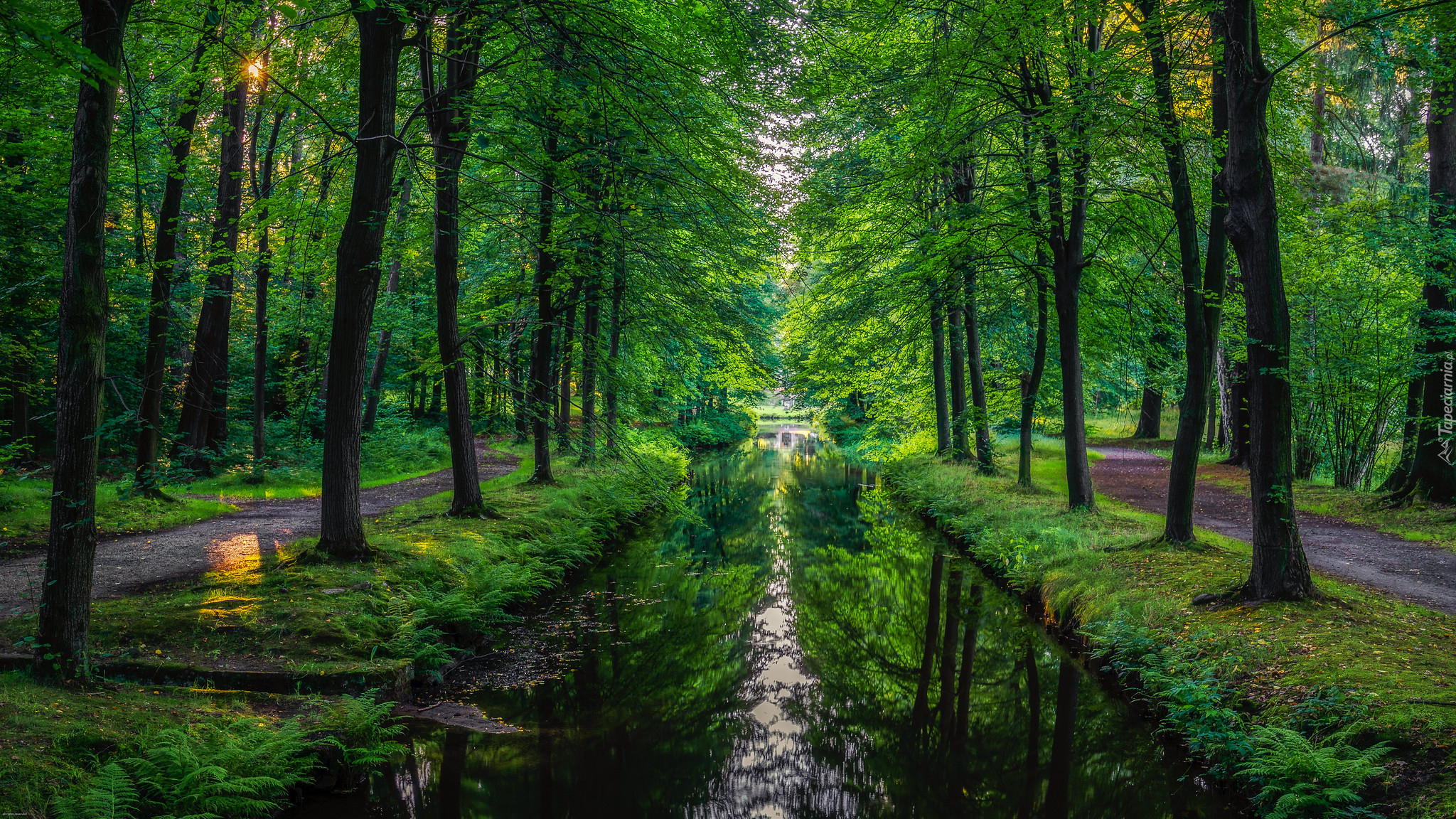 Edytor tapety: Zielone drzewa po obu stronach rzeki