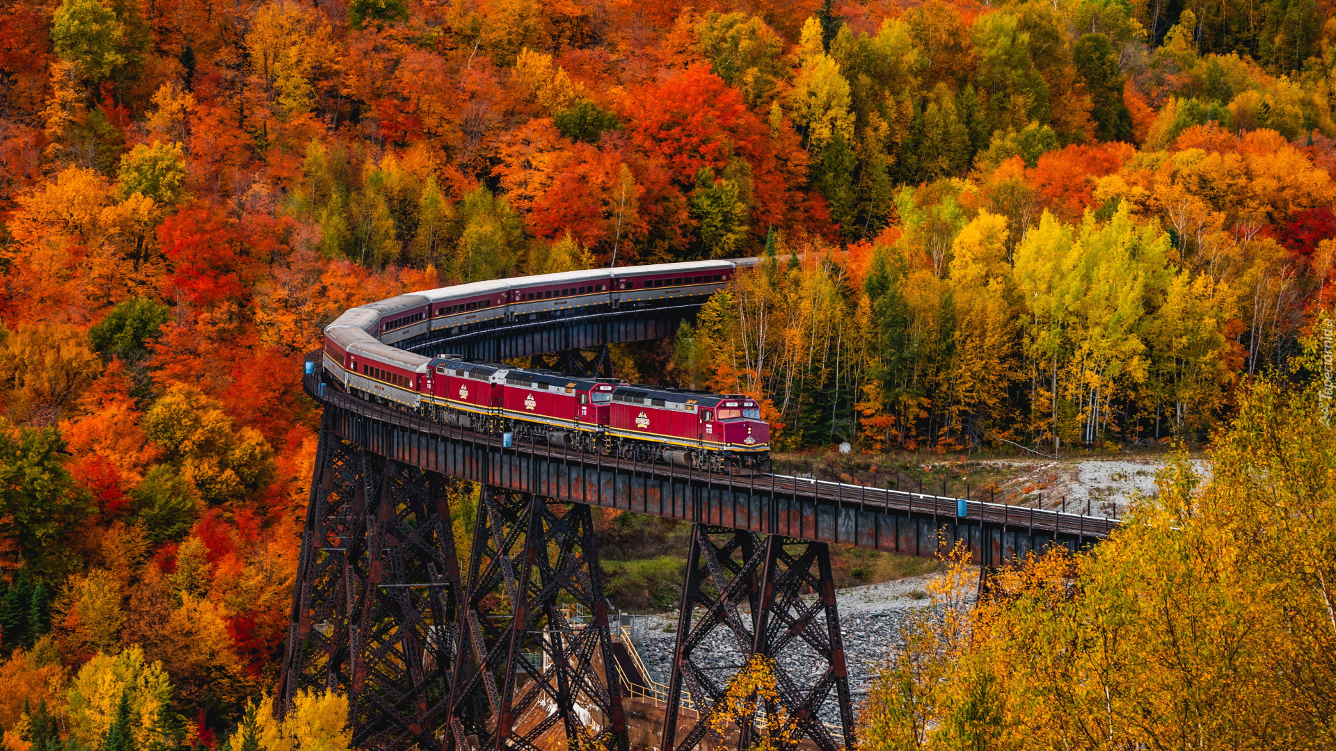 Edytor tapety: Pociąg na wiadukcie wśród jesiennych drzew