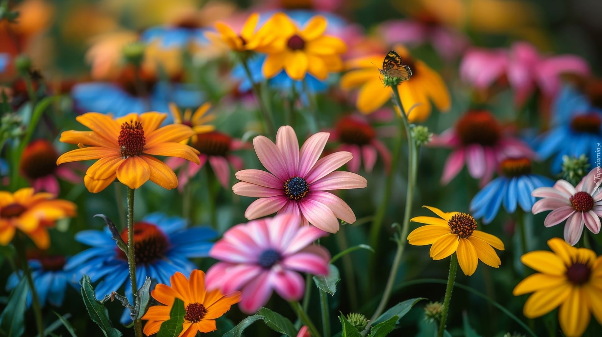 Edytor tapety: Kolorowe rozwinięte kwiaty w zbliżeniu