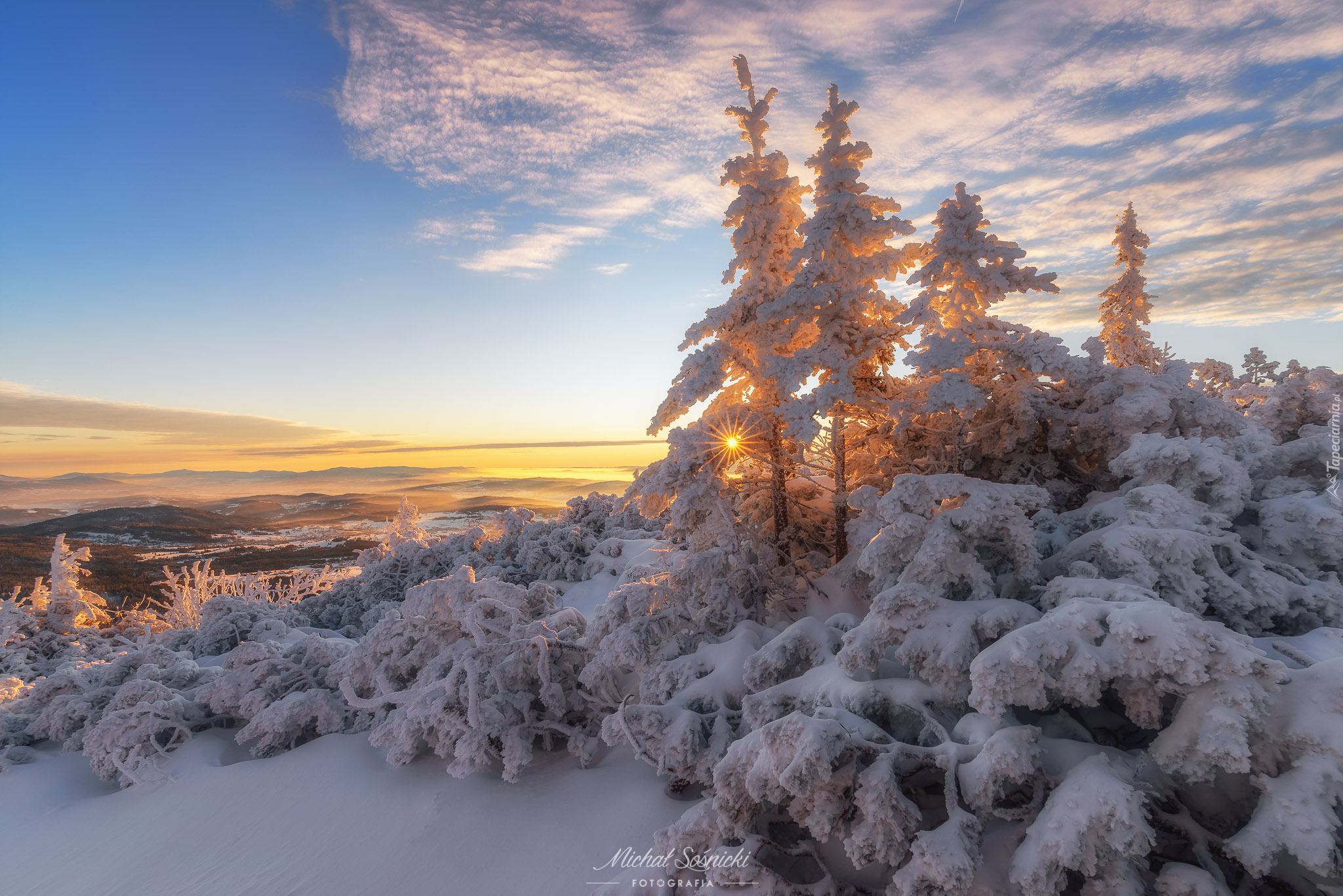 Edytor tapety: Ośnieżone krzewy i drzewa w Babiogórskim Parku Narodowym