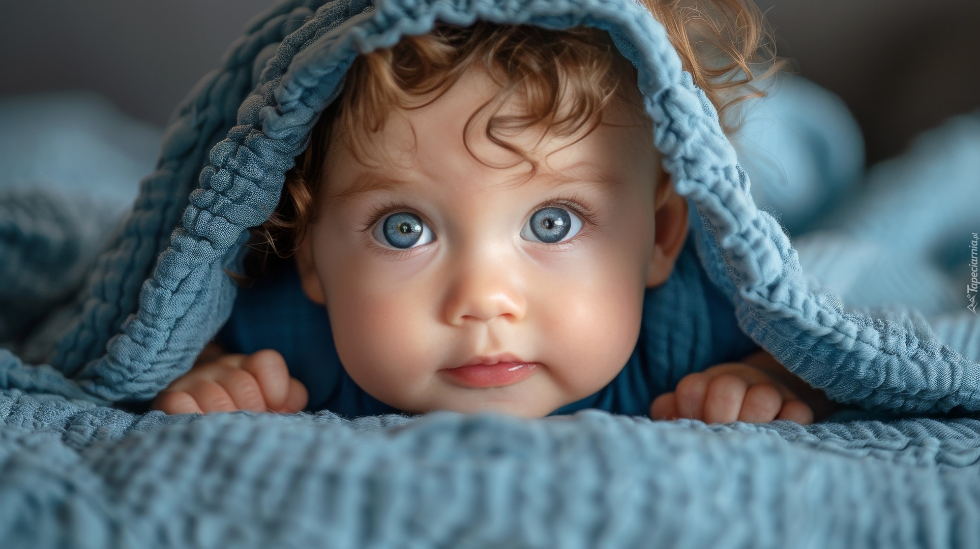Edytor tapety: Niebieskookie dziecko pod niebieskim kocykiem