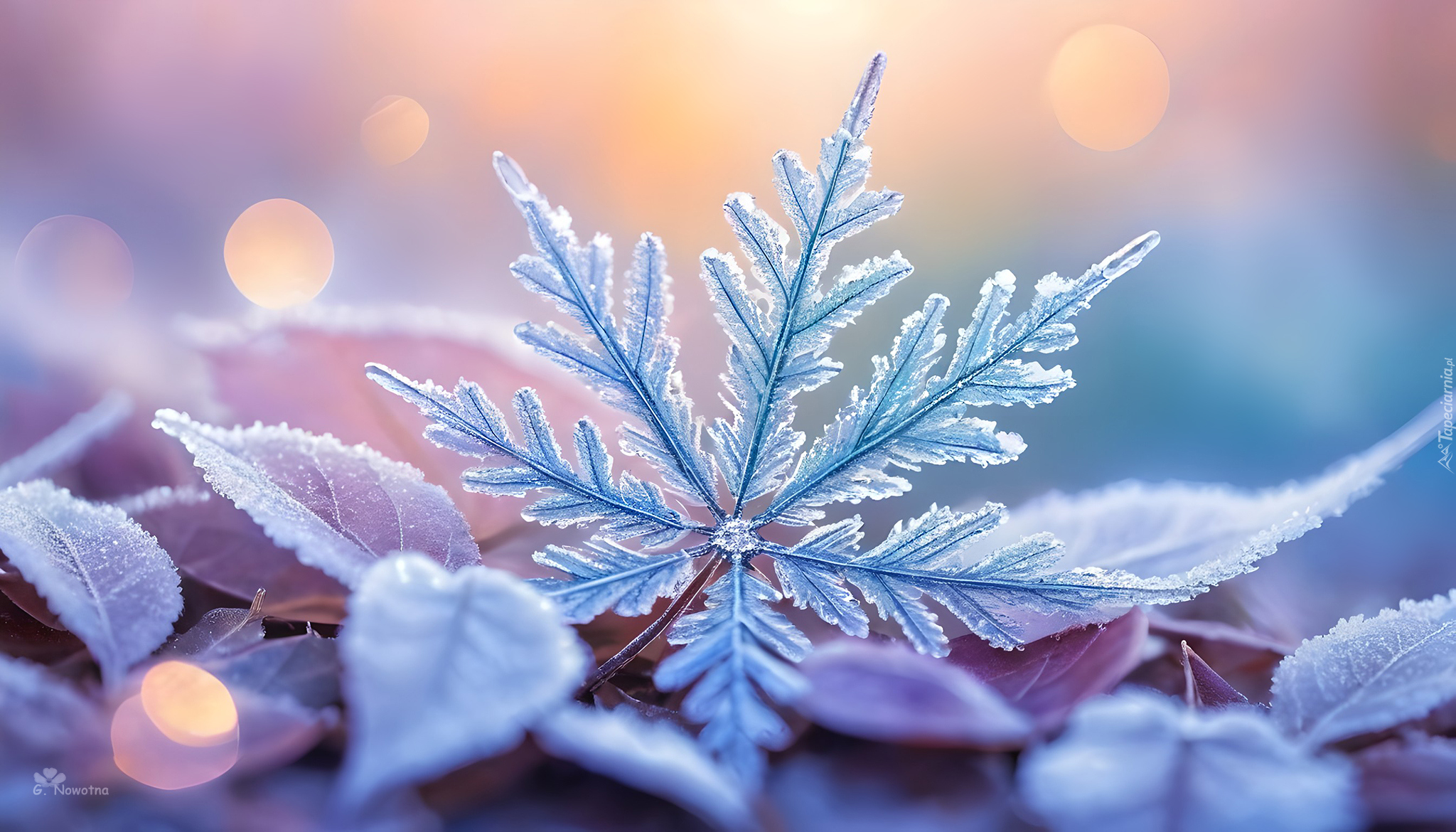 Edytor tapety: Śnieżynka i oszronione jesienne liście