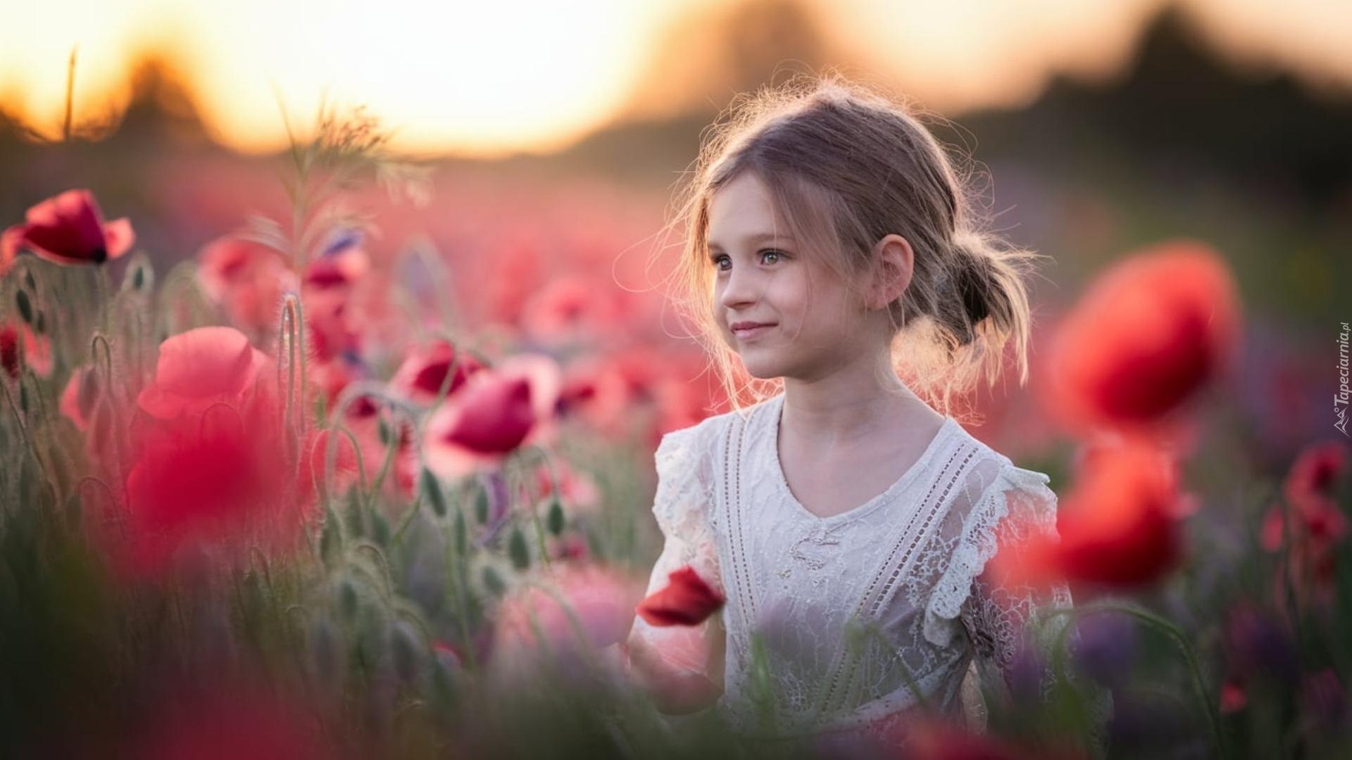 Edytor tapety: Uśmiechnięta dziewczynka wśród maków na polu