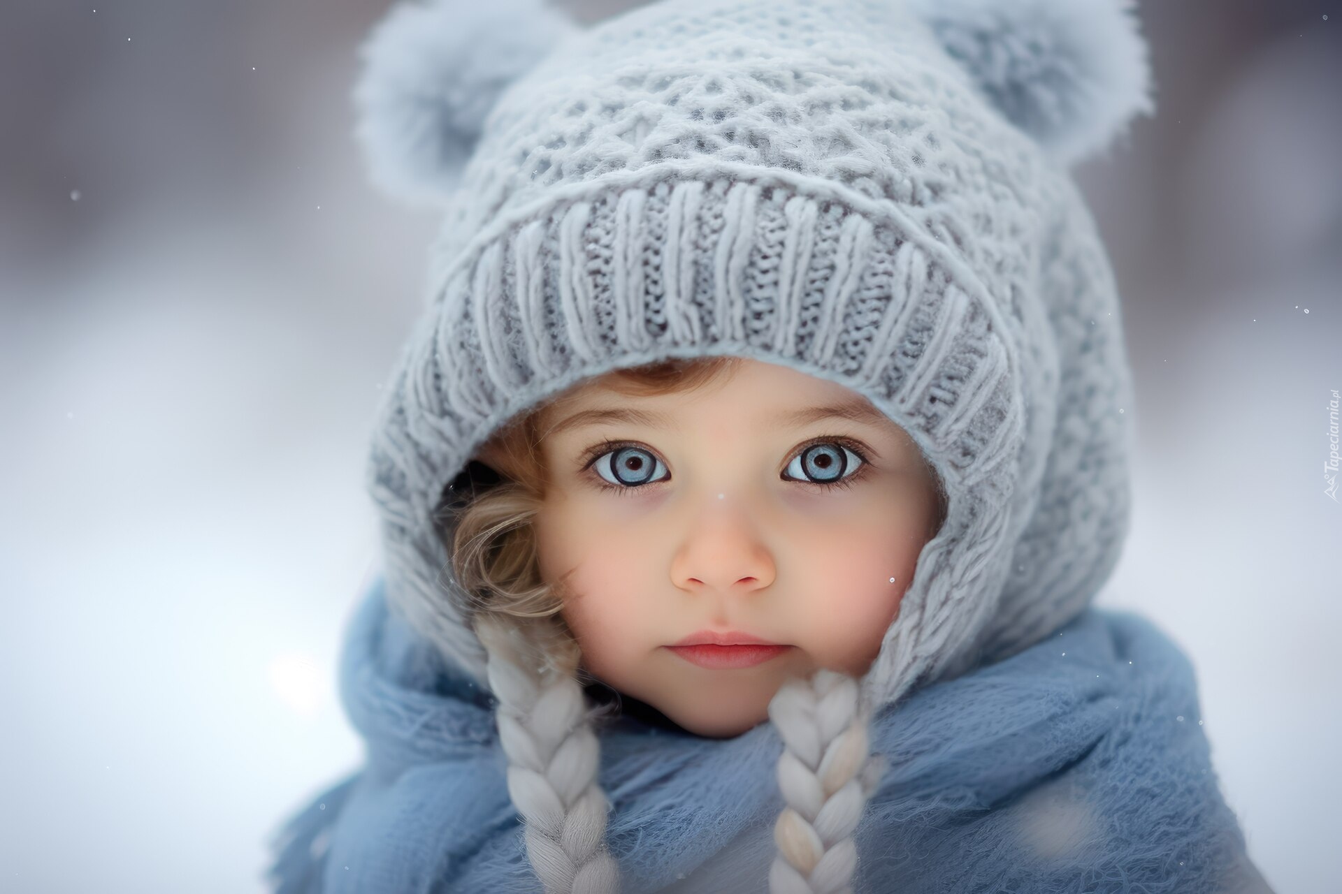 Edytor tapety: Niebieskooka dziewczynka w szarej czapce i szaliku