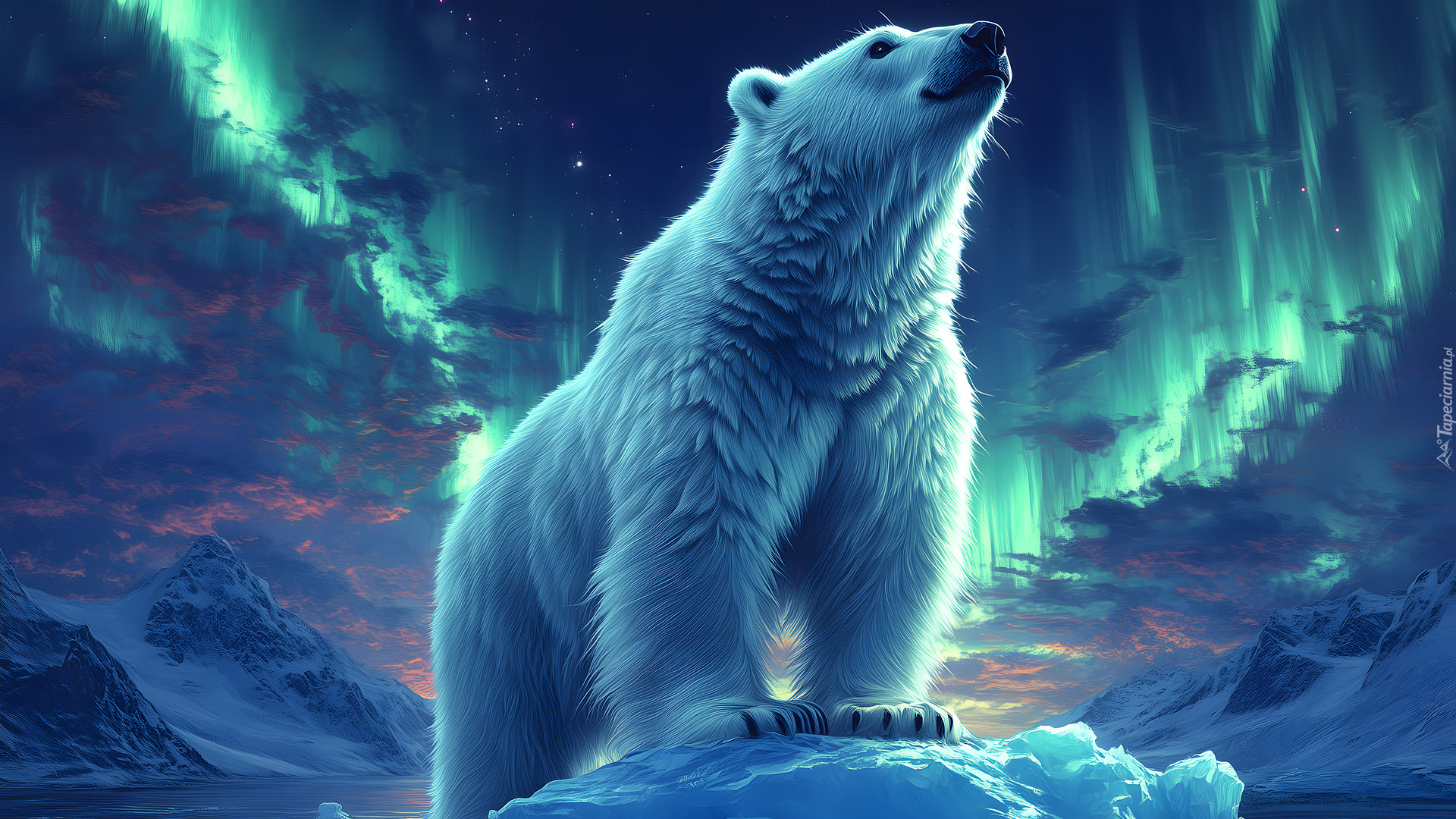 Edytor tapety: Niedźwiedź polarny na tle zorzy polarnej