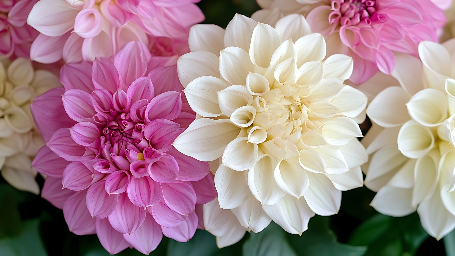 Edytor tapety: Białe i różowe dalie w zbliżeniu