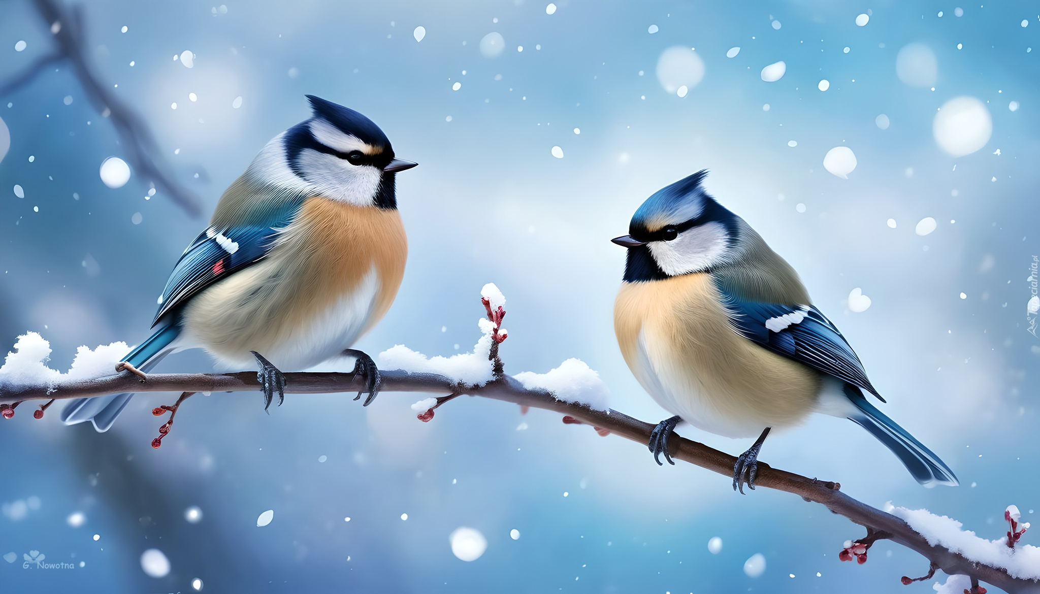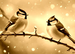 Edytor tapety: Dwie sikorki na ośnieżonej gałązce