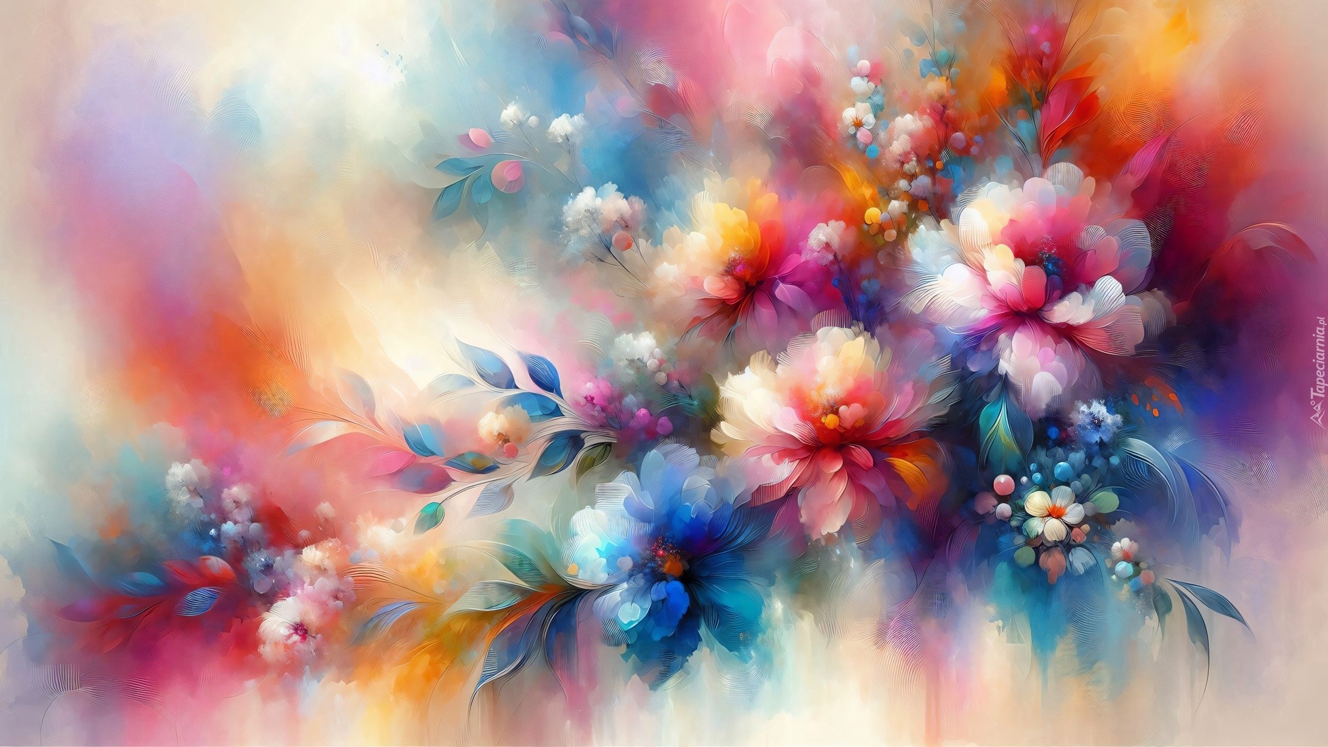 Edytor tapety: Kolorowe kwiaty na kolorowym tle w grafice