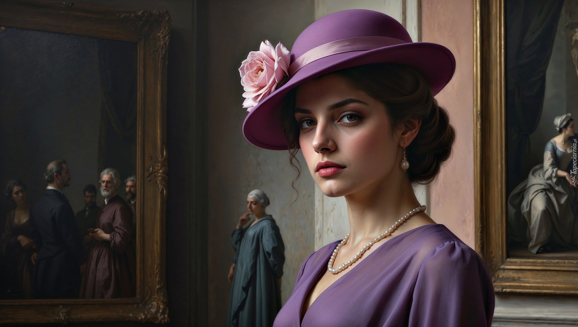 Edytor tapety: Twarz kobiety w fioletowym kapeluszu
