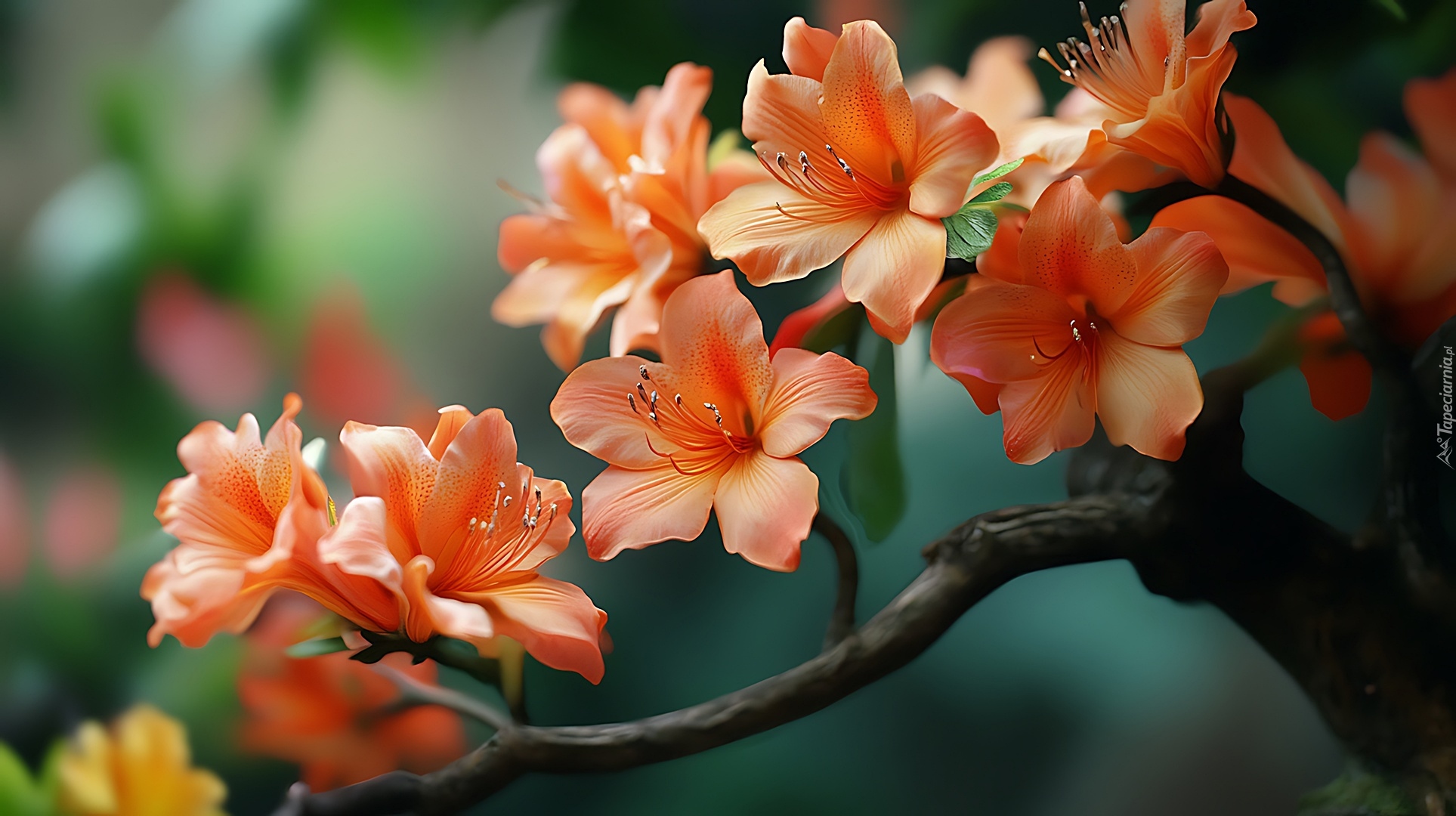 Edytor tapety: Rozświetlone pomarańczowe kwiaty na gałązkach